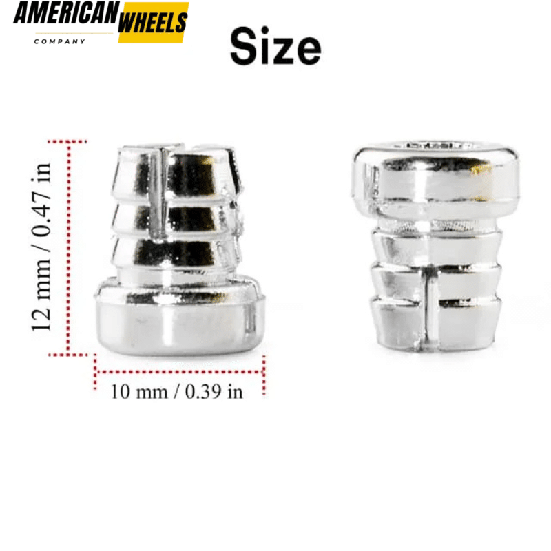 These 10mm 0.39in wheel rim lip rivets nuts for 7.9mm 0.31in nut hole diameters. Universal decorative wheel rivet nuts are available in Chrome and Gold. Please refer to the detailed rivet size diagram provided by RhinoTuning before purchasing.