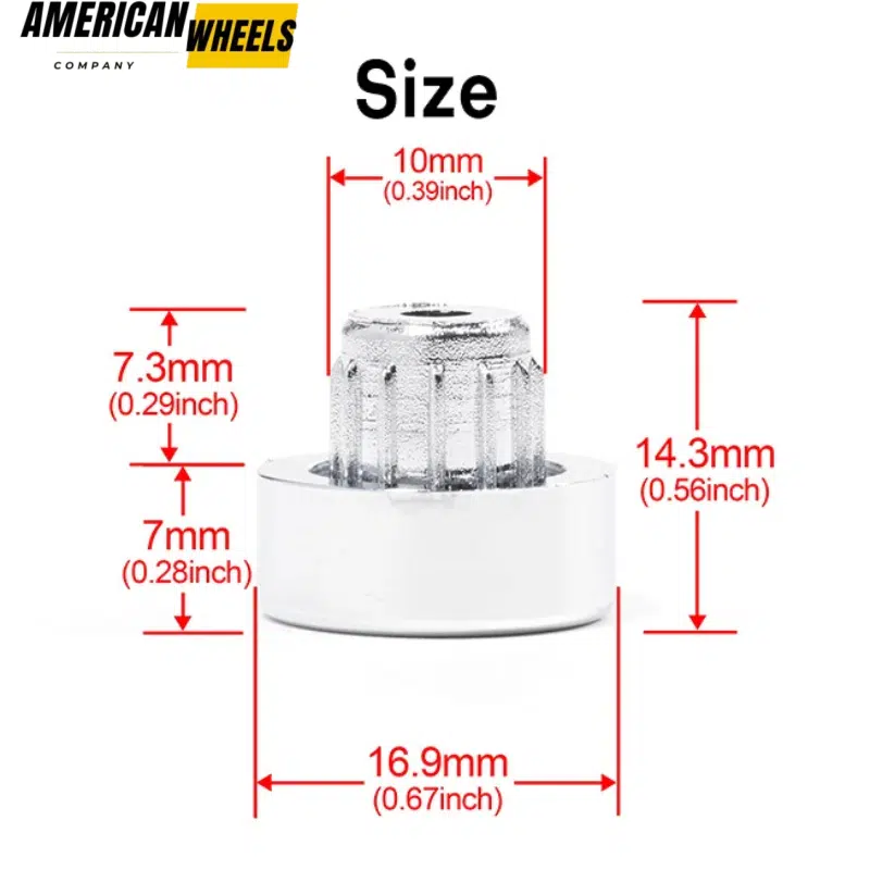 This 16.9mm 0.67in universal wheel edge rivet nuts fits for 10mm 0.39in hole, Can be used for aftermarket or personalized wheel conversions. RhinoTuning provides a detailed dimensional drawing for this wheel rivet, which you can refer to for review.