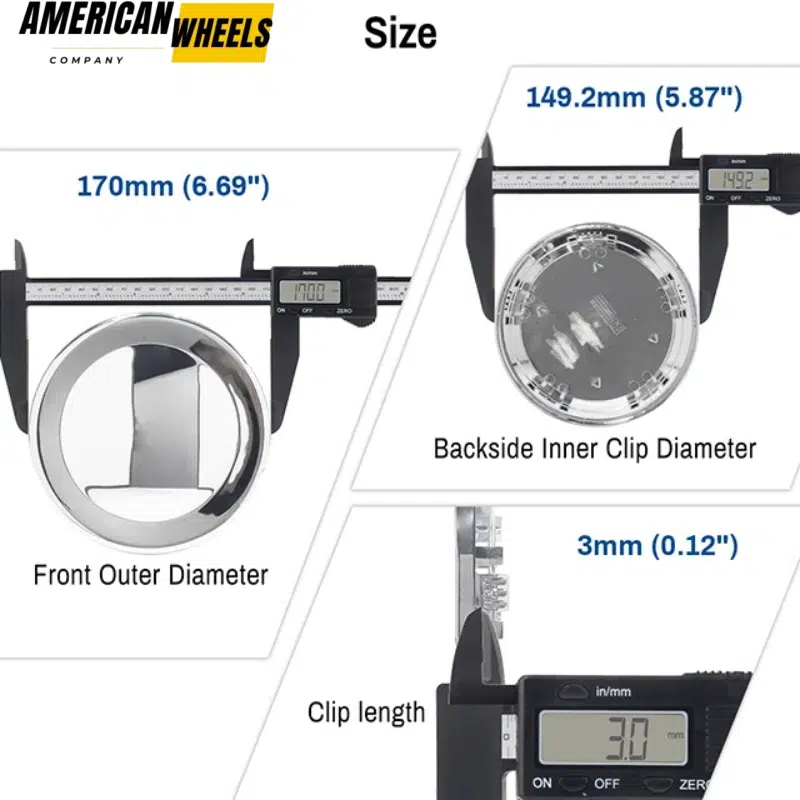 These OD: 170mm 6.69in ID: 149.2mm 5.87in chrome snap on wheel center caps fit for 2006-2009 Lincoln Zephyr / Town Car / MKZ wheel rims. Part Number: 4W1Z1130EA 3W13-1A096-CA 4W13-1A096-BA. Improve the appearance of your Lincoln wheel hubs now.
