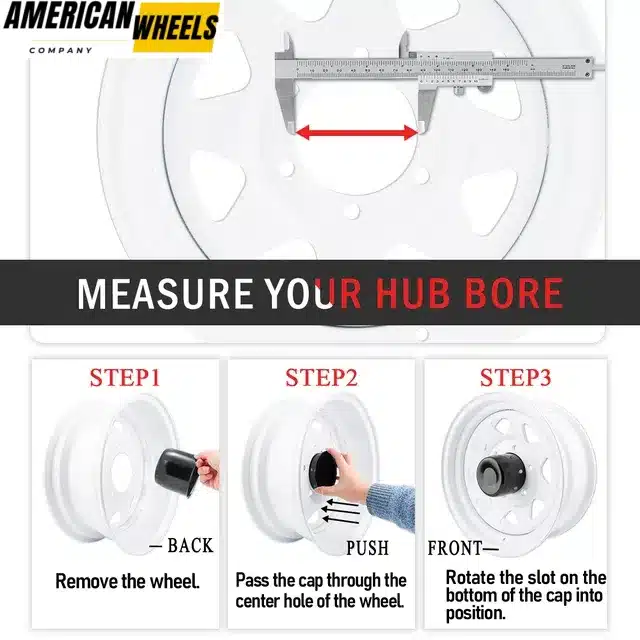 These 4.25 push through center caps are compatible with 108mm/4.25 in trailer, truck and RV rim’s Bore. When installing, push the 4.25 push through center caps directly into the centre of the rim.