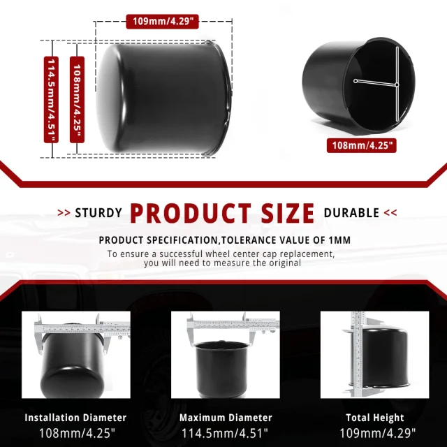 4.25in push-through trailer wheel center caps are ideal for truck rims bore, 4.29in tall. Their primary role is to protect the wheel bearings and axle hub from dust, moisture, and road salt, significantly extending the lifespan of vital parts.