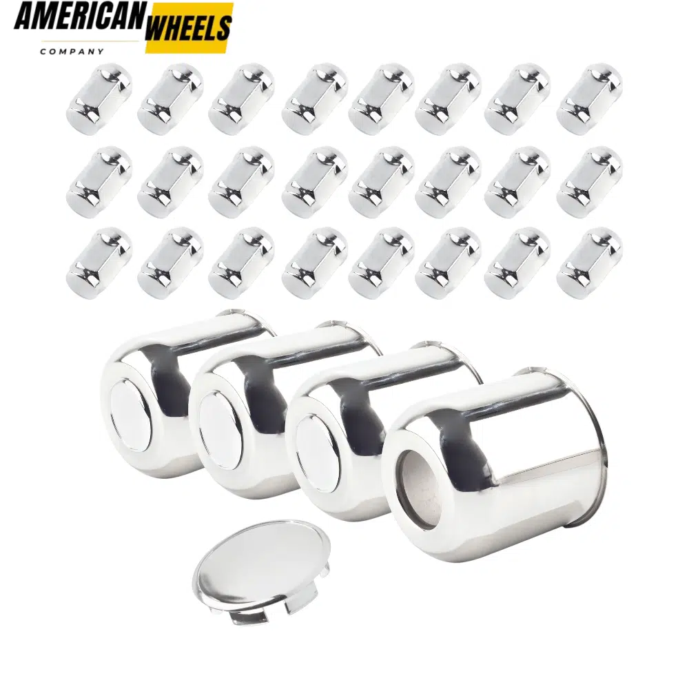 2. Chrome: 4Pcs Center Caps . 24 Pcs 1/2-20 Lug Nuts (Mirror Polished Stainless Steel)