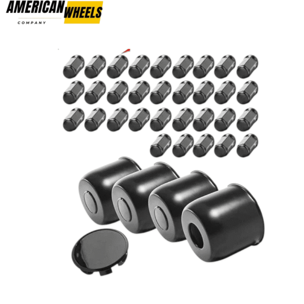4. Matte Black: 4pcs Center Caps. 32 Pcs 9/16-18 60ยฐย Lug Nutsย (Matte Black Painted Carbon Steel)