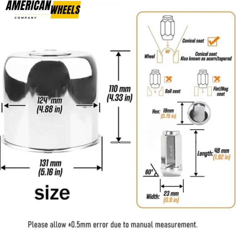 2. Chrome: 4pcs Center Caps. 32 Pcs 9/16-18 60ยฐย Lug Nutsย (Mirror Chrome Plated Carbon Steel)