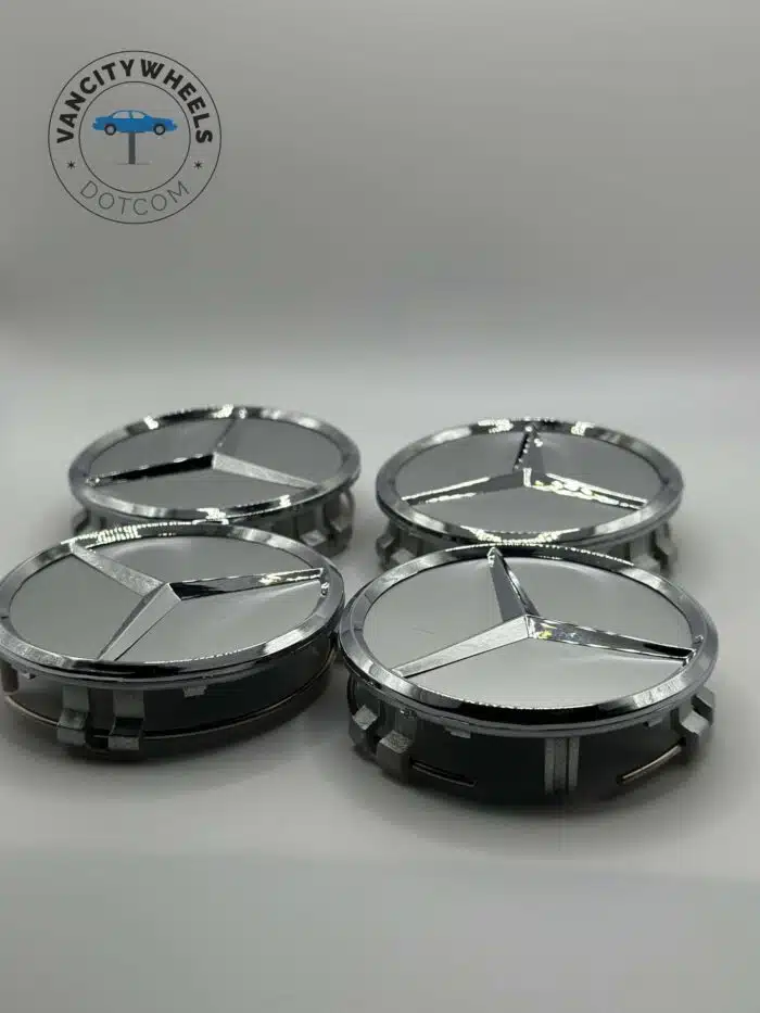Mercedes Benz 75mm Wheel Center Caps โ Matte Silver/Chrome (Set of 4)