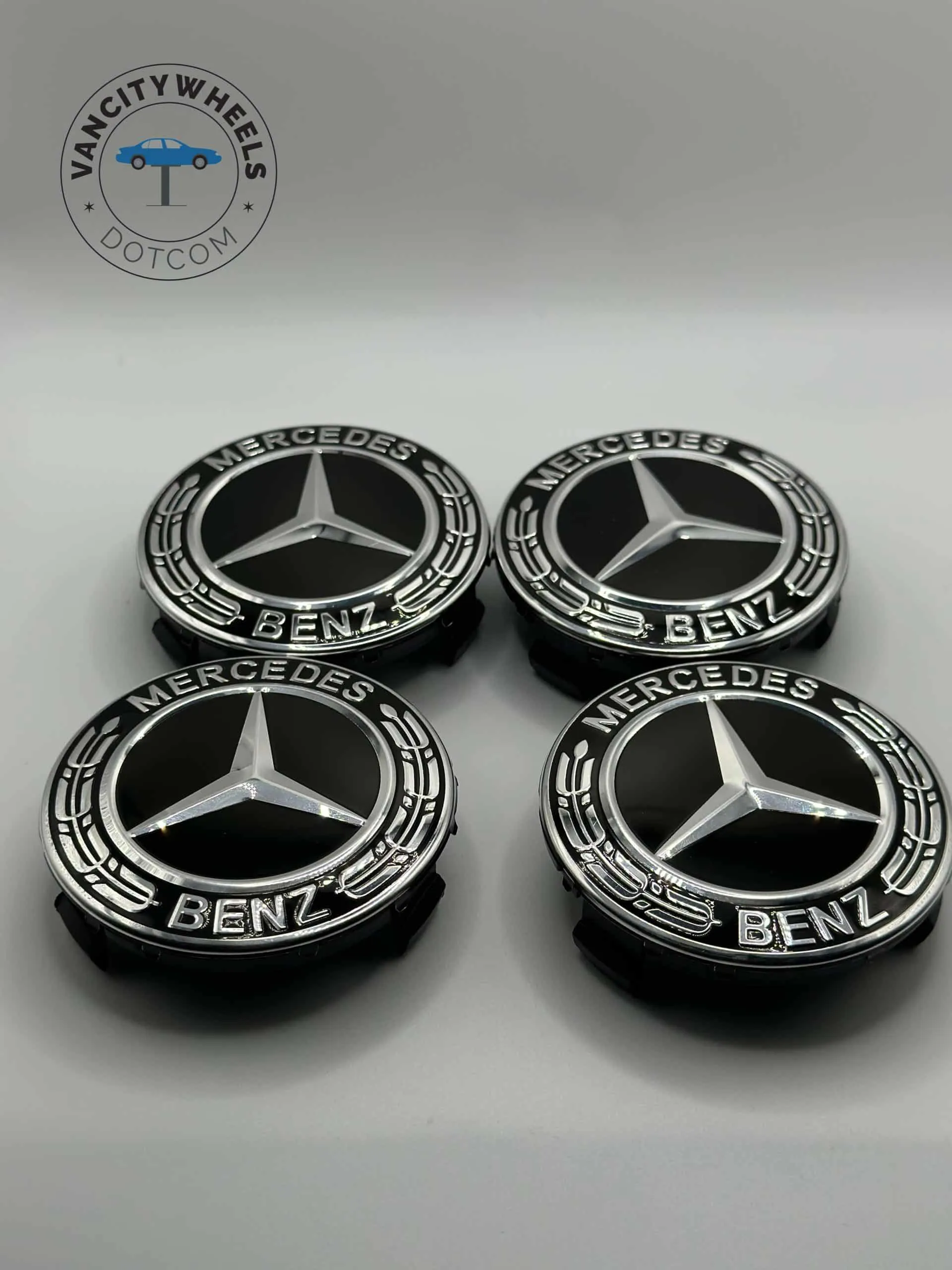 Mercedes Benz 75mm Wheel Center Caps – 4Pcs, Black