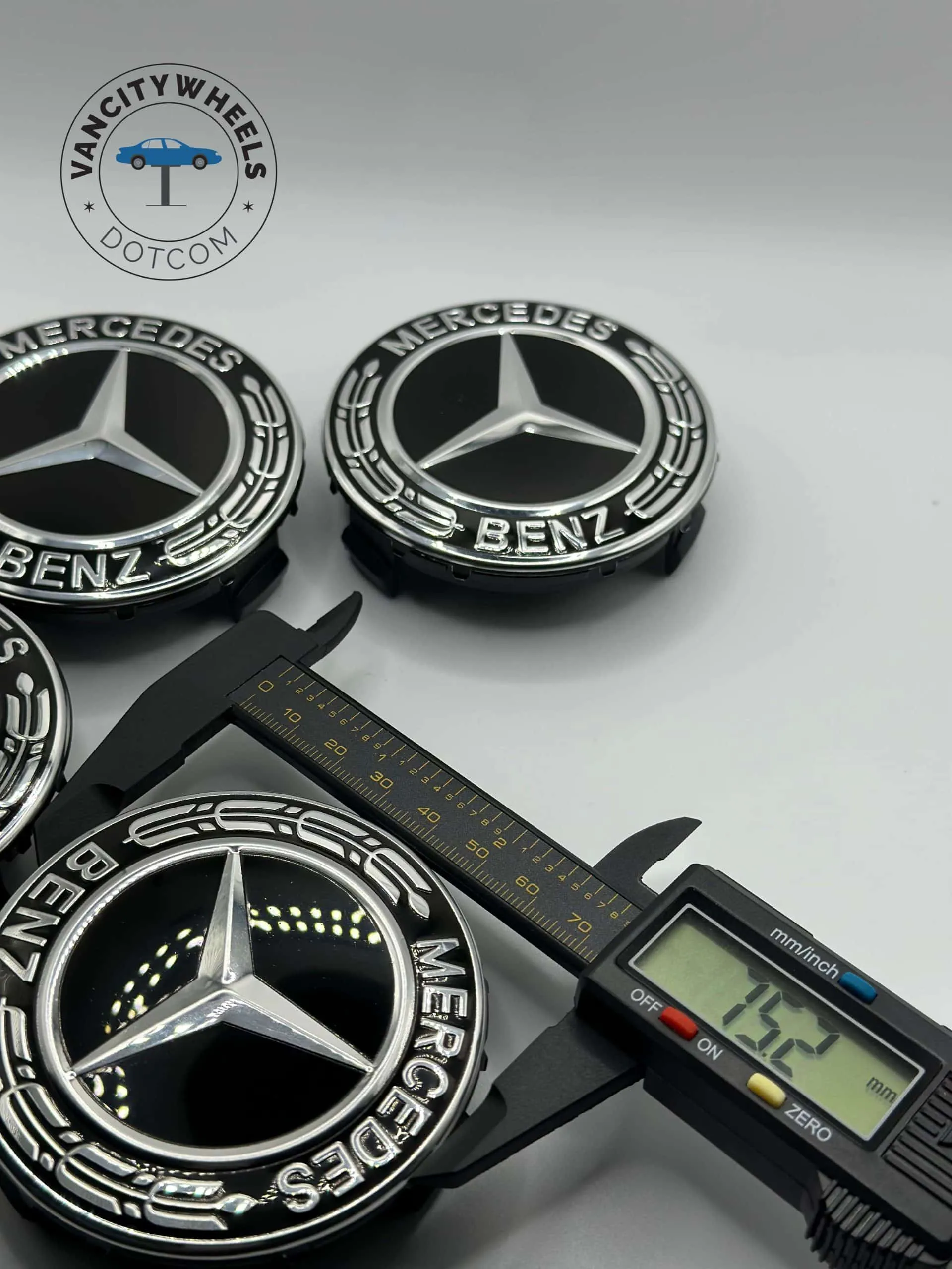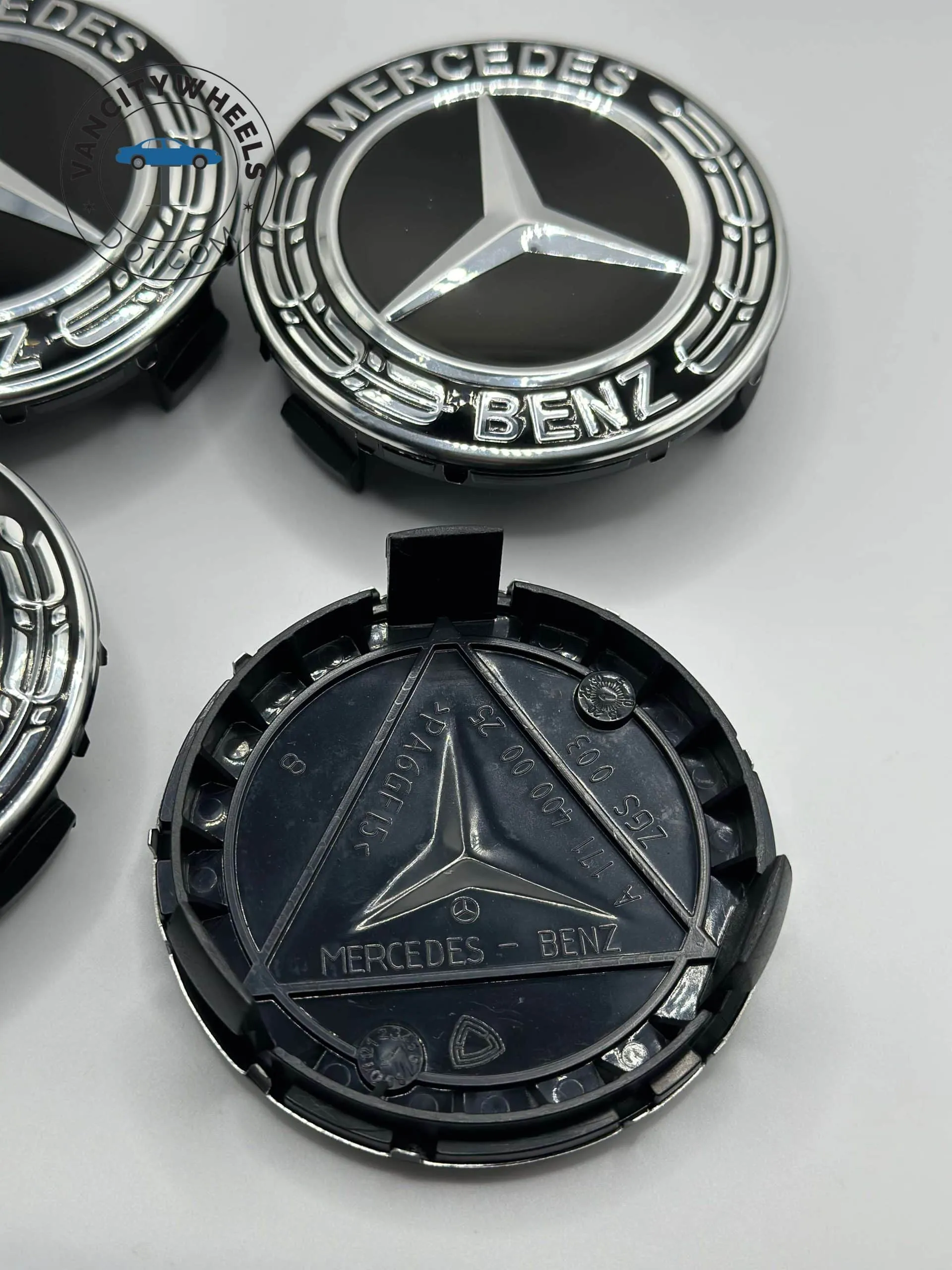 The manufacturer designed these caps exclusively for original equipment manufacturer (OEM) Mercedes-Benz wheels.