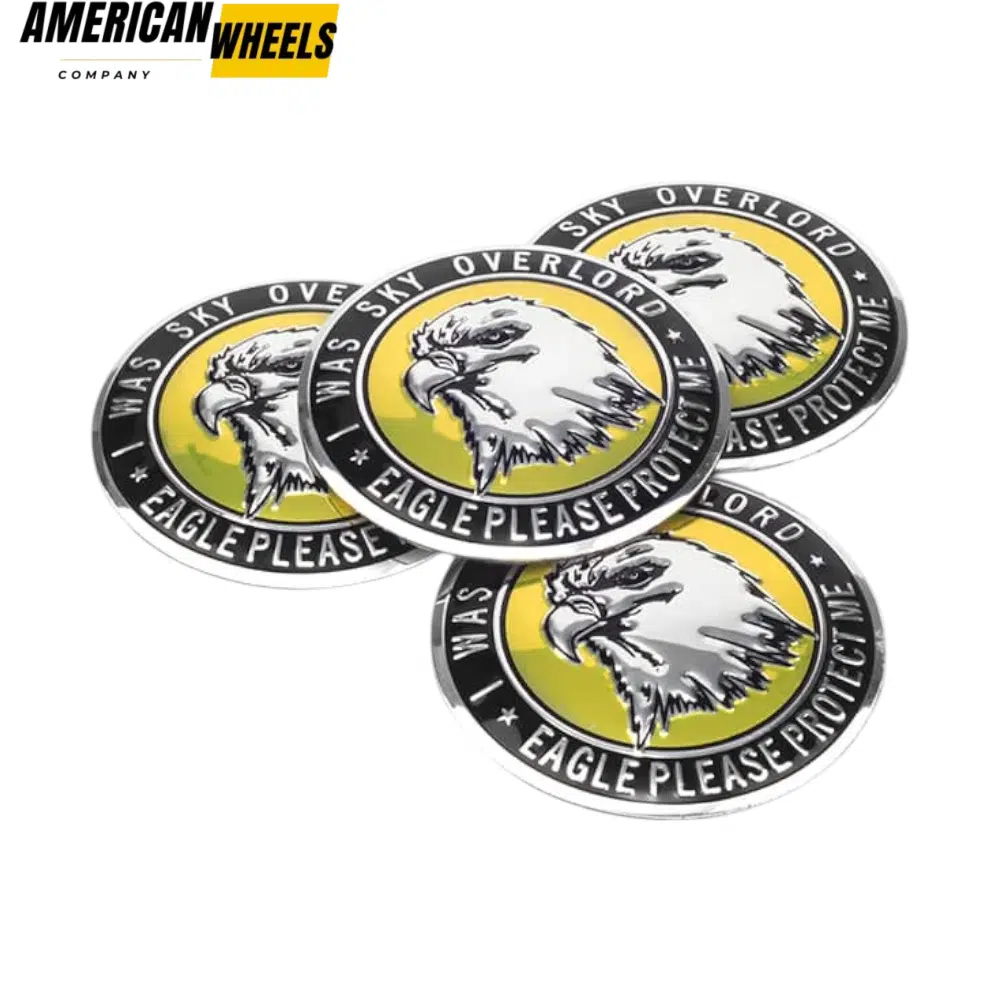 These 4pcs of 56.5mm wheel center cap stickers. The eagle design is made of aluminum for a personalized wheel and effectively protects the original cap from scratches. Easy to install, with strong adhesion, it is dustproof, enhancing the rim appeal.