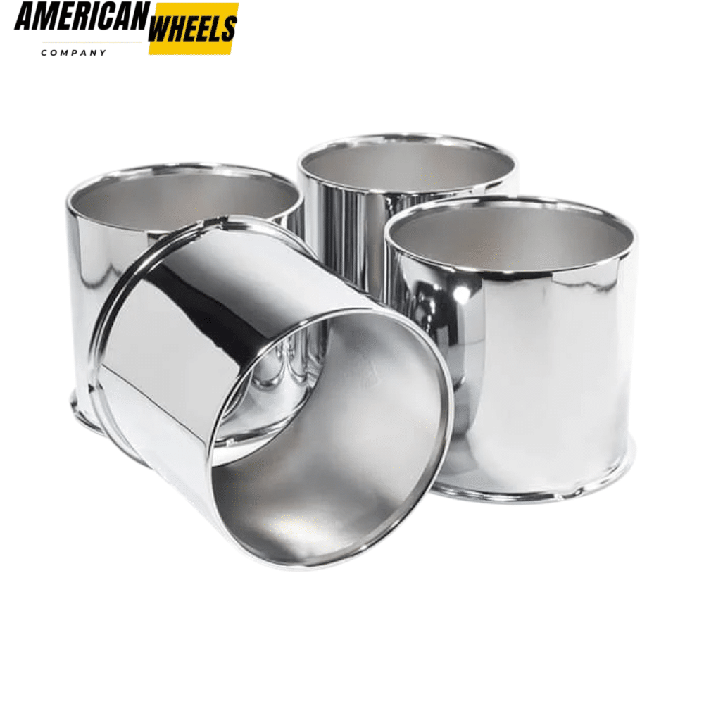 These 5.15in opened end push through trailer wheel center caps fit for 5.15in center hub bore 4.69in tall RV truck, trailer, or SUV rims. They are made of carbon steel and their surfaces are treated with mirror chrome plated and matte black painted.