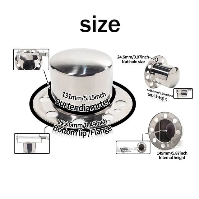 These 5.15in stainless rear dually Eagle Alloys 8-lug center hub caps are fit for 8×6.5 and 8×170 bolt pattern wheels. Not fit 2019 or newer RAM or DODGE, 8×210 (2011-newer CHEVY/GMC), 8×200 (05-newer FORD and 2019-NEWER RAM or DODGE). PN:3109-06.