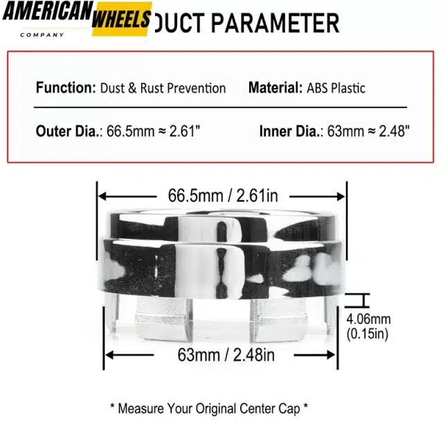 | Hubcap Height | 31mm(+ -1mm) | 1.22in |