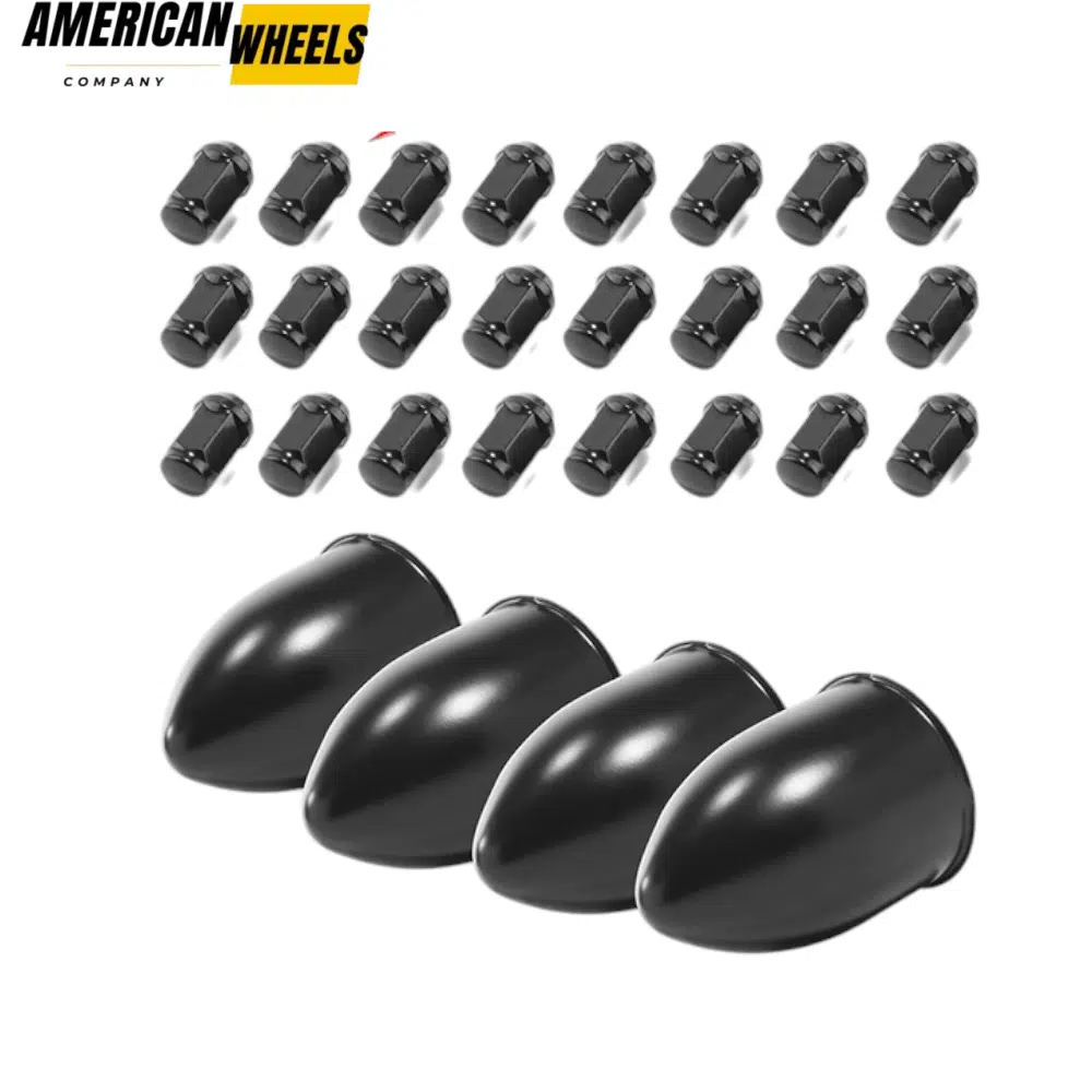 2. Matte Black: 4pcs Center Caps. 24 Pcs 1/2-20 Lug Nuts (Matte Black Painted Carbon Steel)