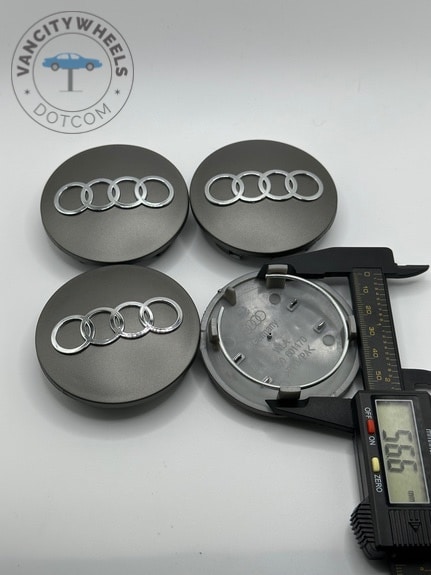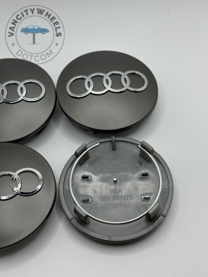 • Quantity: Full set of 4 Audi 68mm Grey and Chrome Wheel Center Caps.