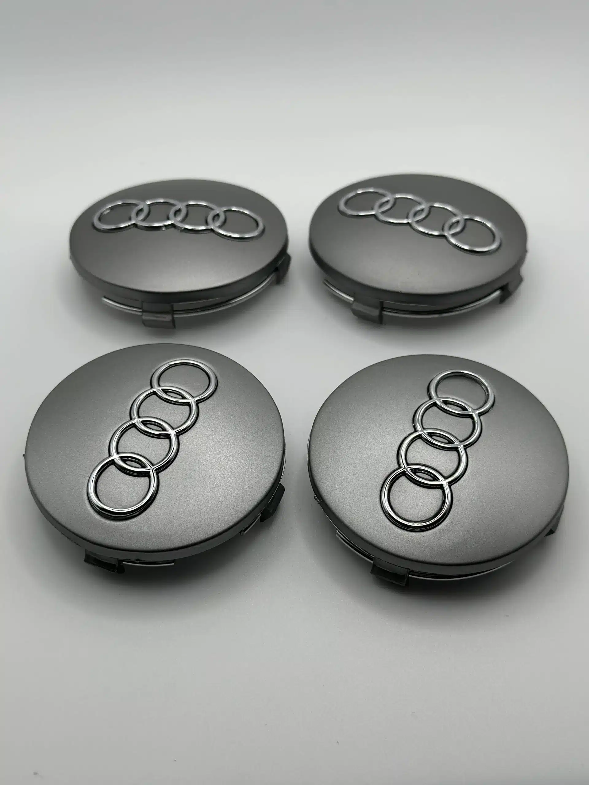 Audi Wheel Center Caps 60mm – Set of 4 Grey & Chrome Badge Covers