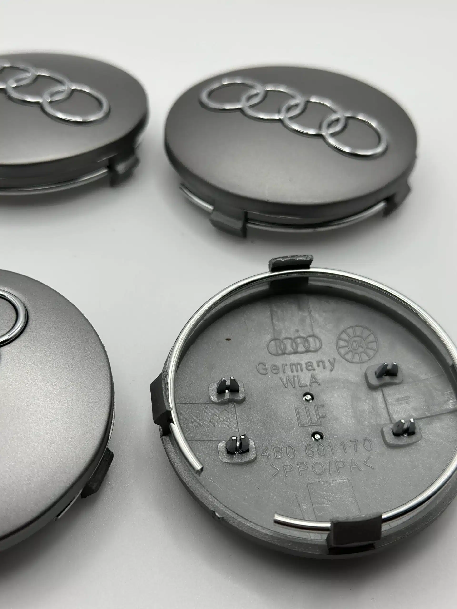 Every Audi Wheel Center Caps 60mm set is manufactured from high-impact, automotive-grade ABS plastic. This ensures maximum resistance to road salt, brake heat, and UV exposure, preventing the finish from yellowing or cracking over time. These caps feature a precise snap-on clip design, allowing for a tool-free installation that provides a secure, rattle-free holdโeven at highway speeds.