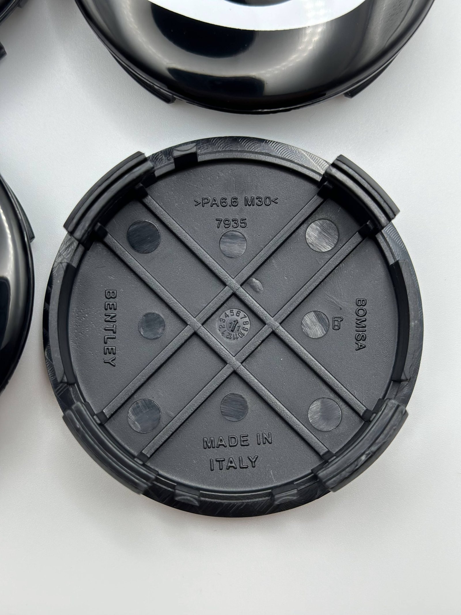 Secure Snap-on Installation: These Bentley 69mm Wheel Center Caps feature a robust tension clip system for a secure, tool-free installation.