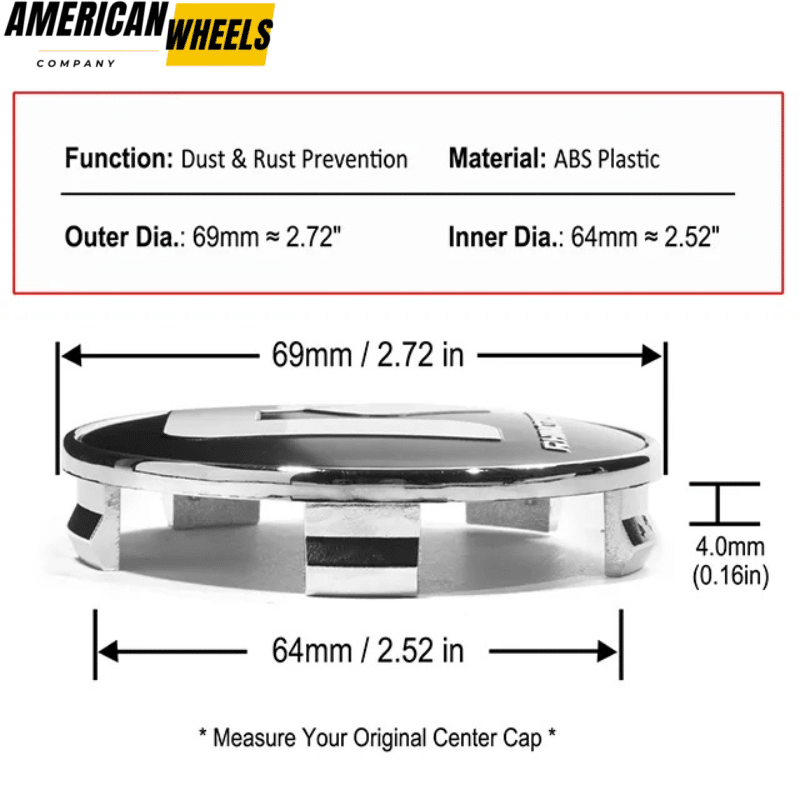 These OD: 69mm 2.72in and ID: 64mm 2.52in wheel center caps are suitable for BMW 1 2 3 4 5 6 7 8 X1 X3 X4 X5 X6 Z3 Z4 Z8 series wheel rims. They also fit for 2002 Acura Factory Mag, TSW and Beyern Rims. PN: 36136768640 36131095361 36131180419.