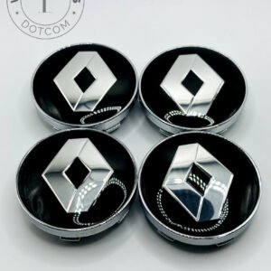Renault 60mm Black & Silver Wheel Center Caps – 4pc Diamond Logo Set