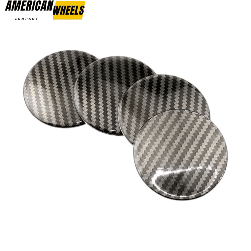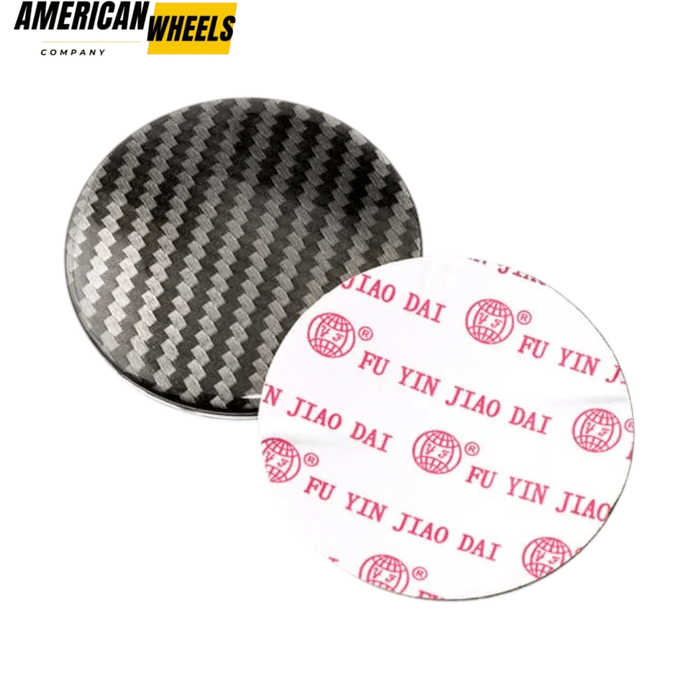 The 68mm wheel center cap aluminum stickers with carbon fiber pattern master features a precisely curved design for a seamless fit. Adhesive ensures long-lasting stability, a striking upgrade without replacing the entire wheel center rim caps.
