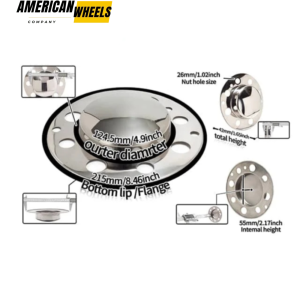 4.9in 2 Front 2 Rear Stainless Lug Nut Center Cap for 8×6.5 Wheel 134-1 4.9″ Shaft Diameter – 20274371CH=[74351CH+74352CH]x2
