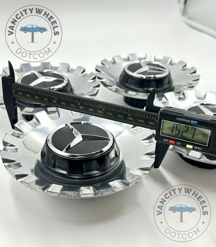 Before ordering these center caps for mercedes a2224000900, confirm that your wheel’s center hole measures 154mm ± 1-2mm externally and approximately 70mm ± 1-2mm internally. Check your existing center caps for the same part number—A2224000900. Returns are not accepted for incorrect sizing, so measure carefully. If you have any questions, contact us for further guidance.