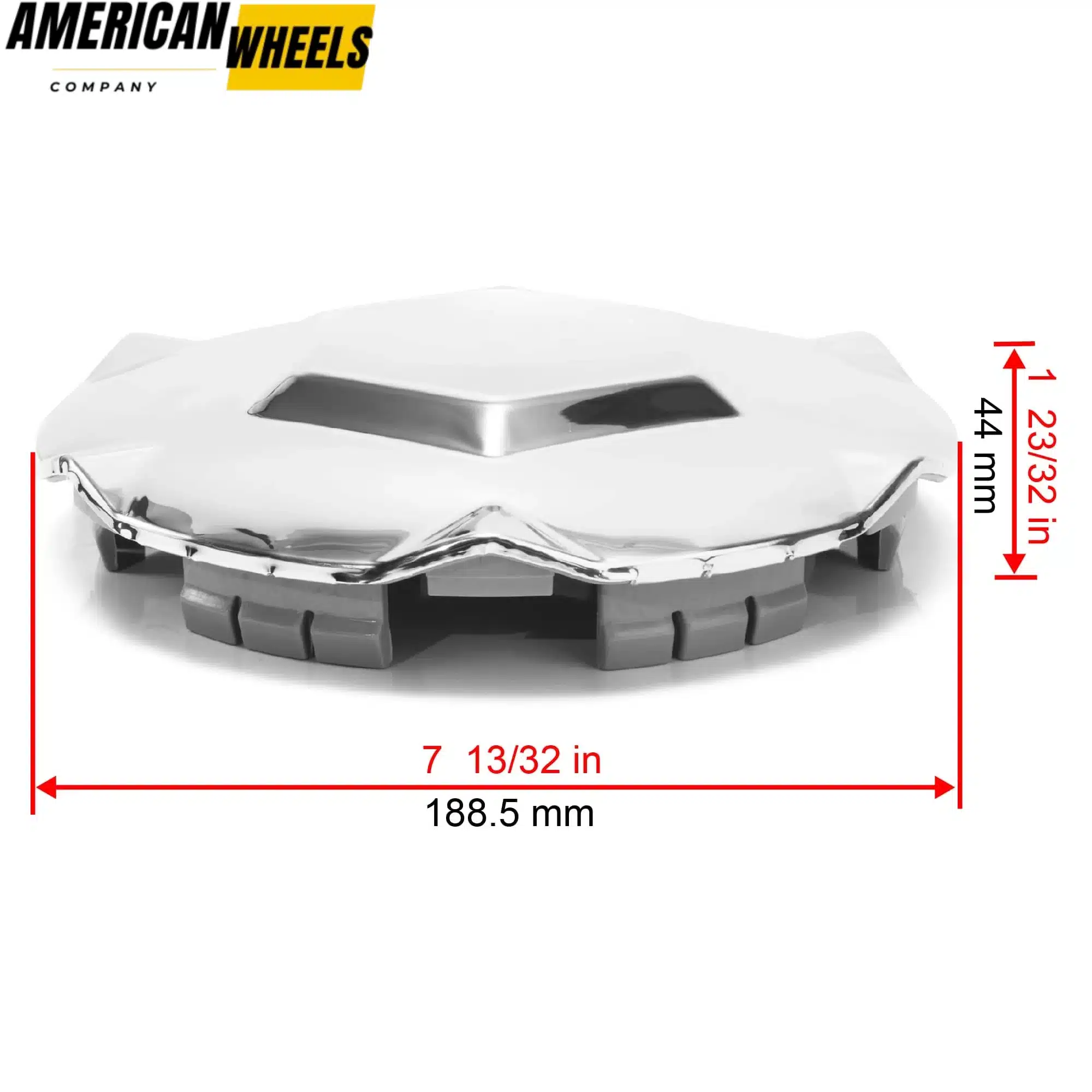 These 188.5mm chevrolet wheel center caps for envoy XL XUV N80 17″ Rims. The surface is chrome-plated, and the central three-dimensional hexagonal shape highlights the unique design sense while effectively protecting the center axis of the wheel hub.