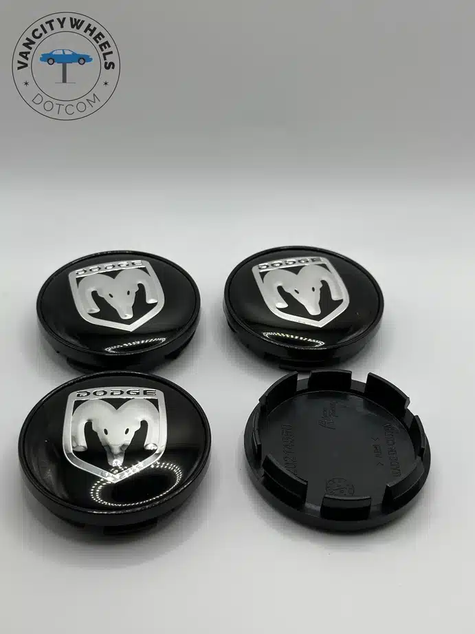 Quantity: Full set of 4 Dodge 60mm Silver and Black Wheel Center Caps.