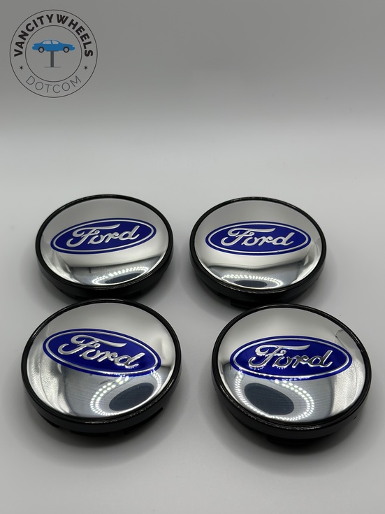 Quantity: Full set of 4 Ford 60mm Black and Chrome Wheel Center Caps.