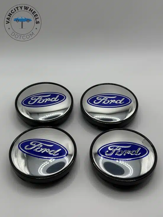 Ford 60mm Black & Chrome Wheel Center Caps – 4pc Premium Set