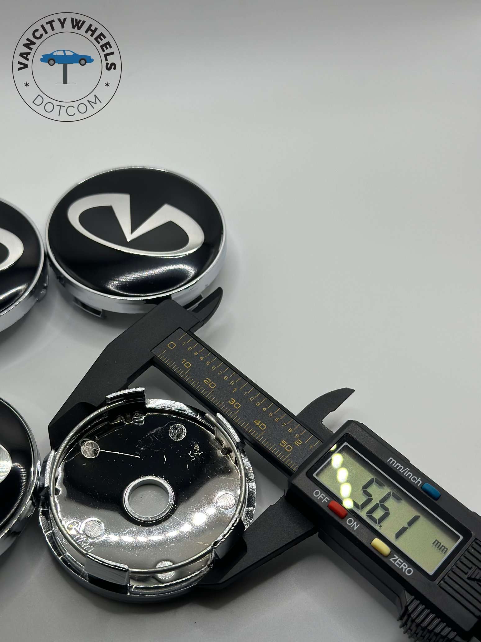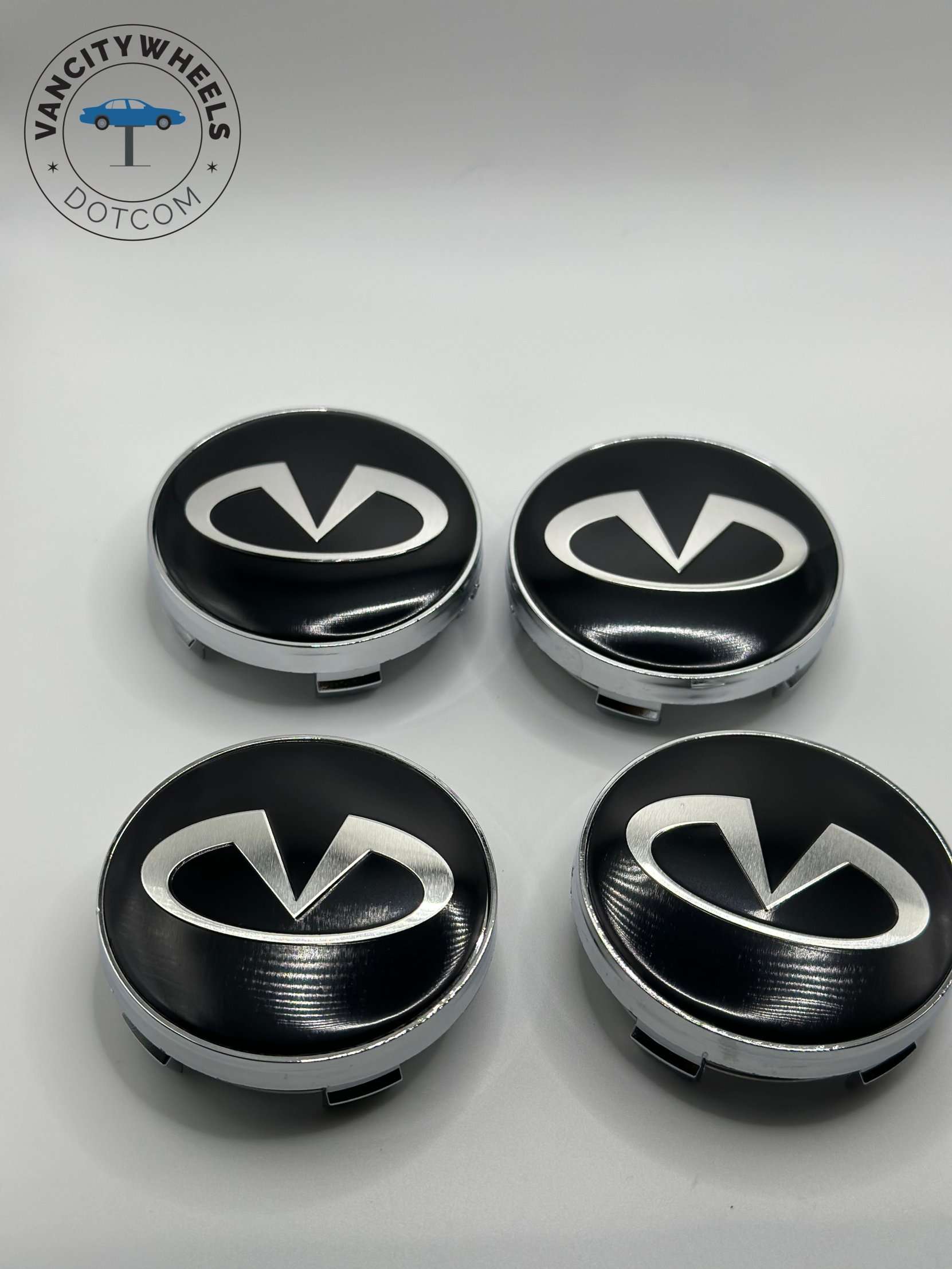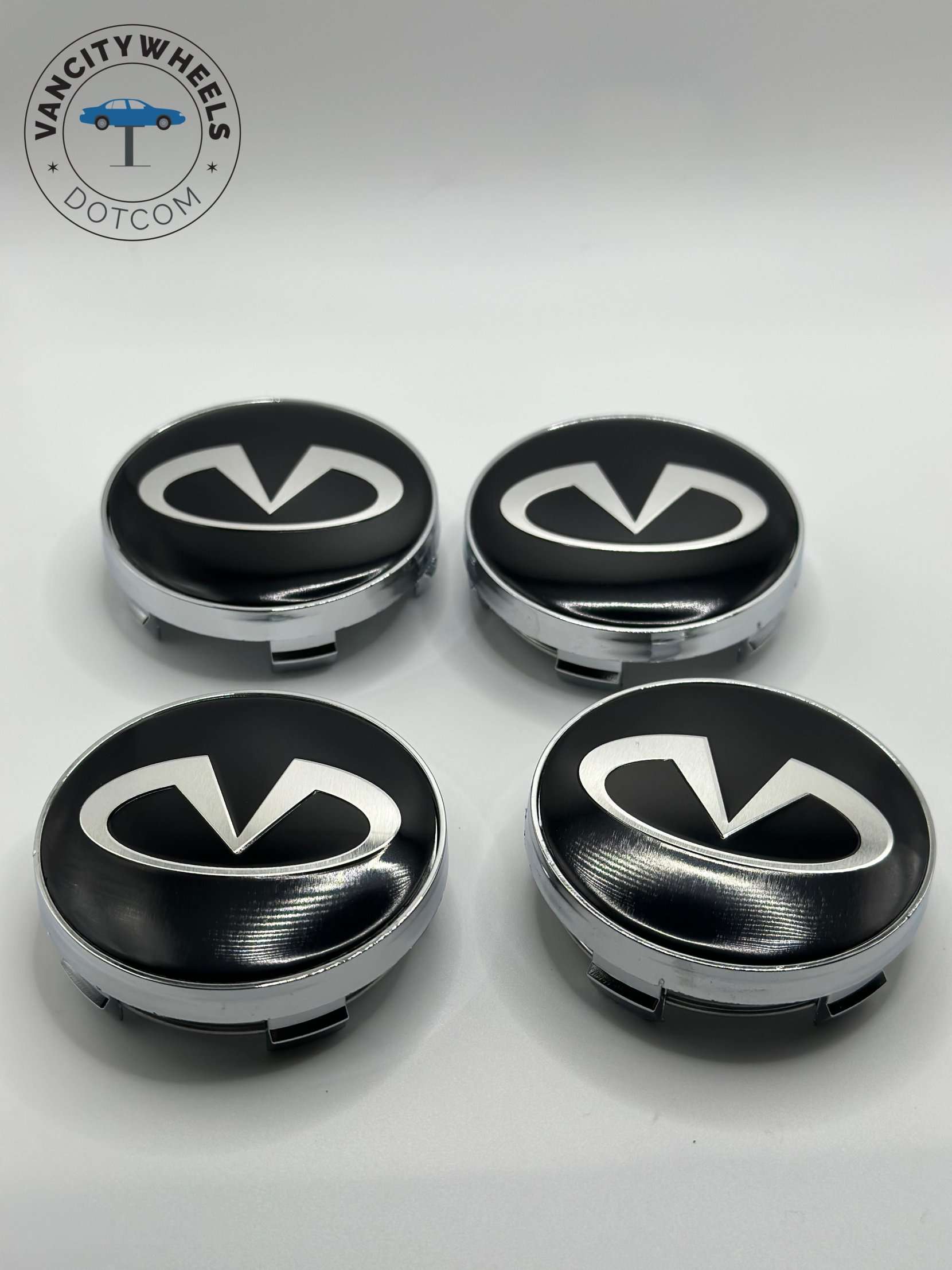 Infiniti 60mm Wheel Center Caps – 4pc Chrome & Black Set