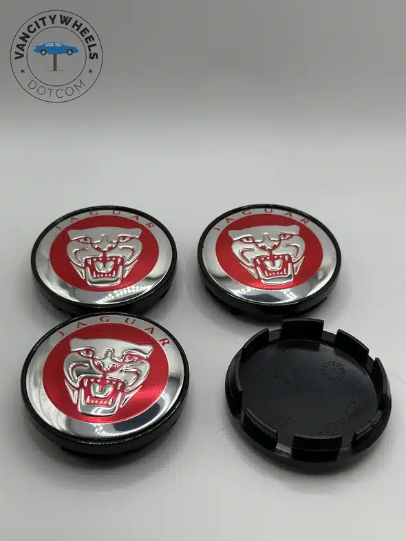 Jaguar 60mm Black Wheel Center Caps – 4pc Chrome Growler Set