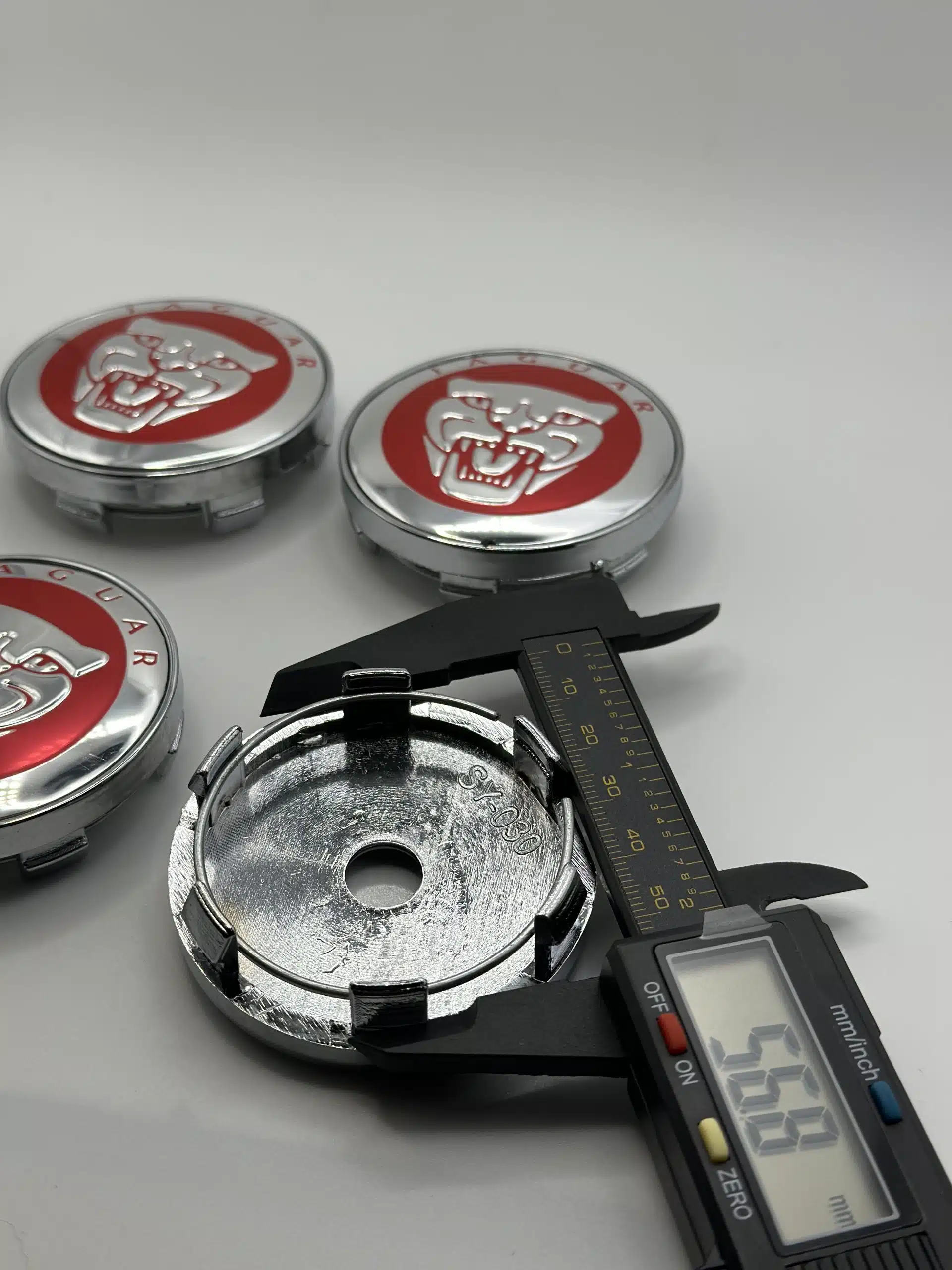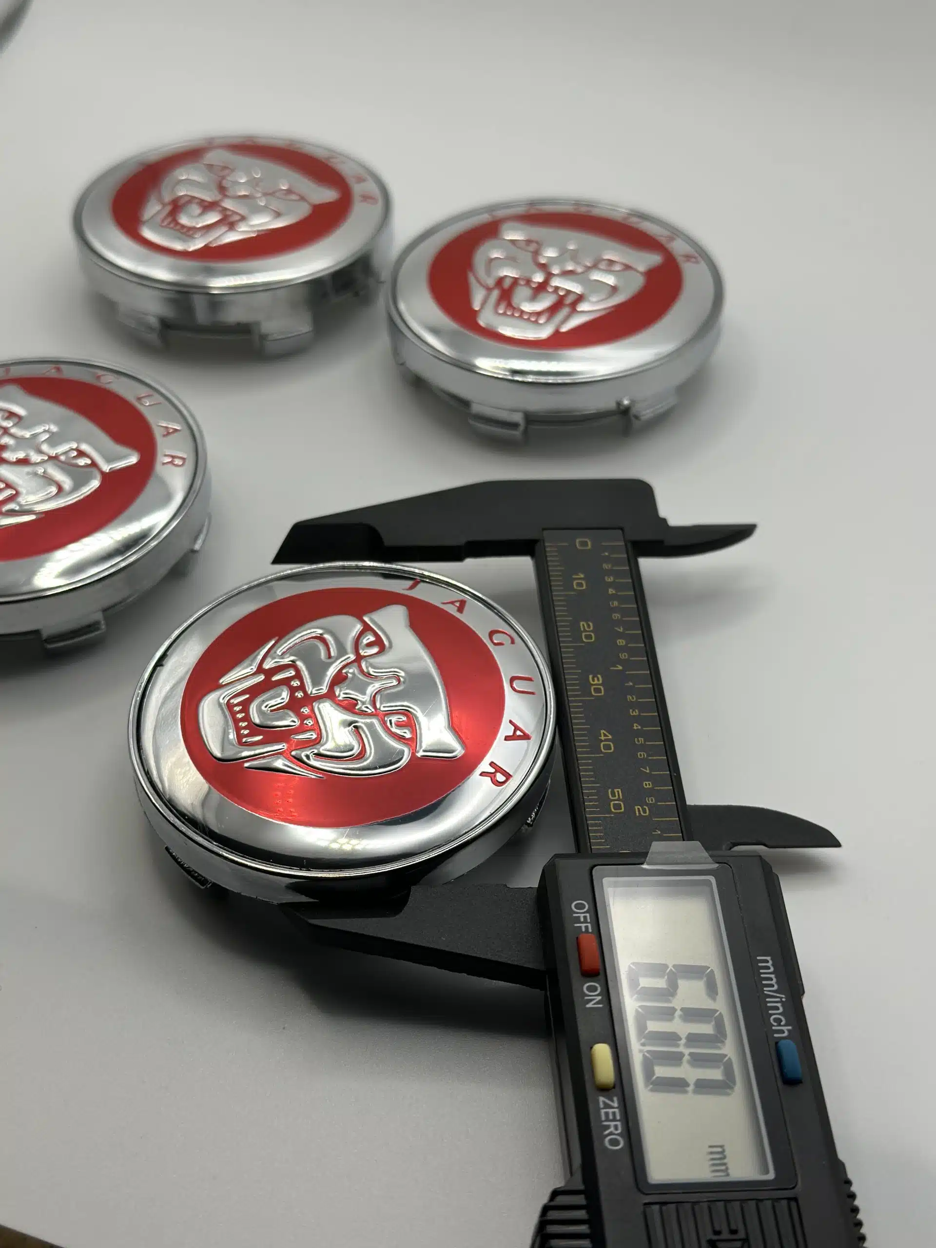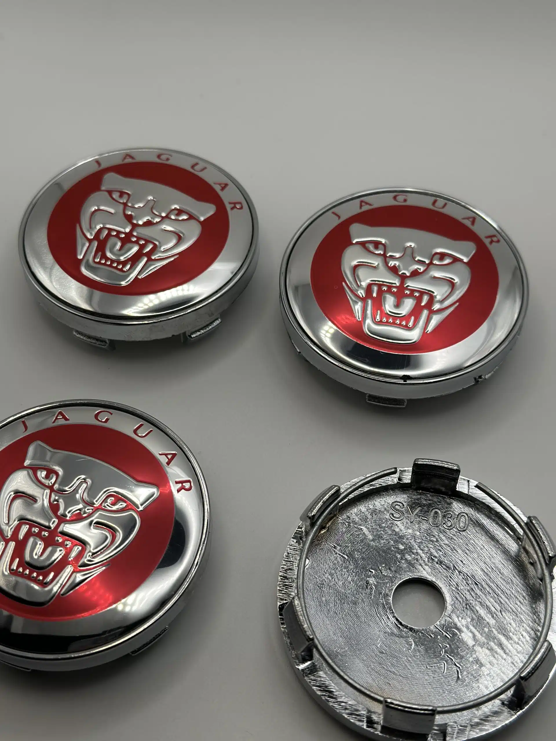Jaguar Red Wheel Center Caps – 60mm 4pc Chrome & Red Set