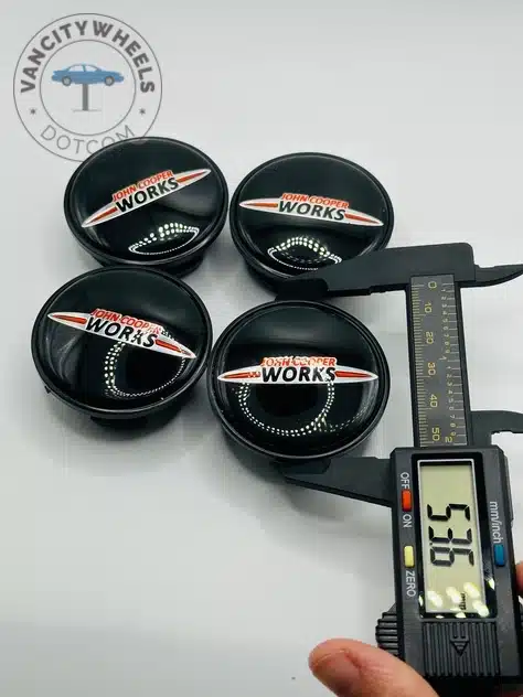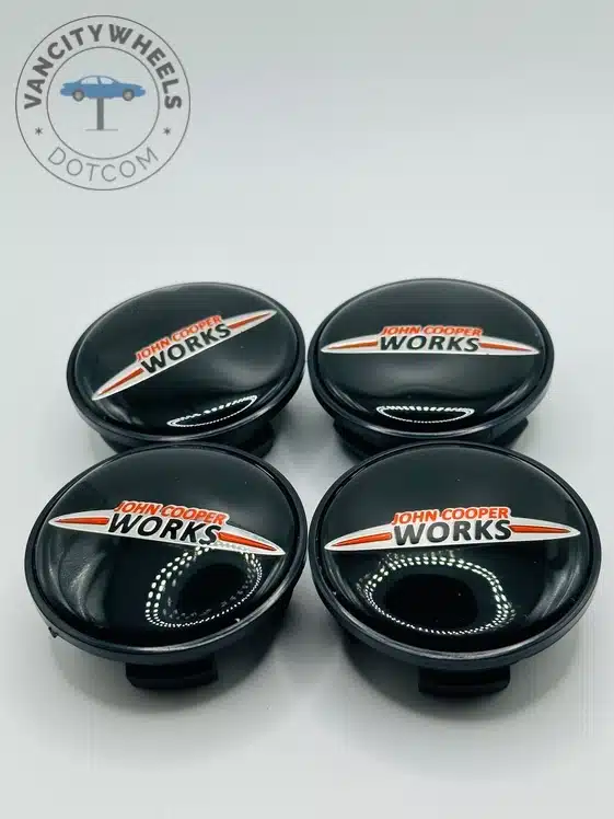 Quantity: Full set of 4 John Cooper Works 54mm Black Wheel Center Caps.