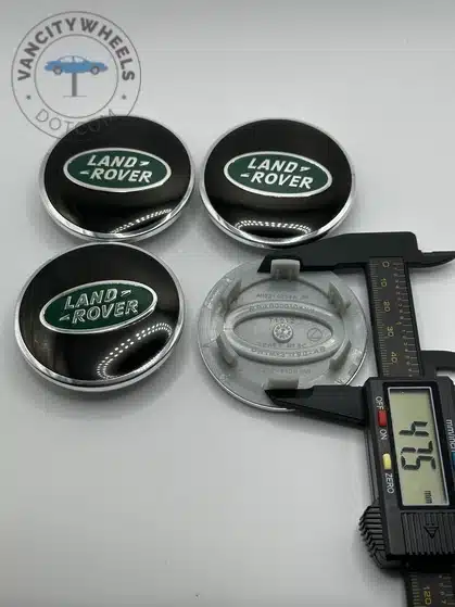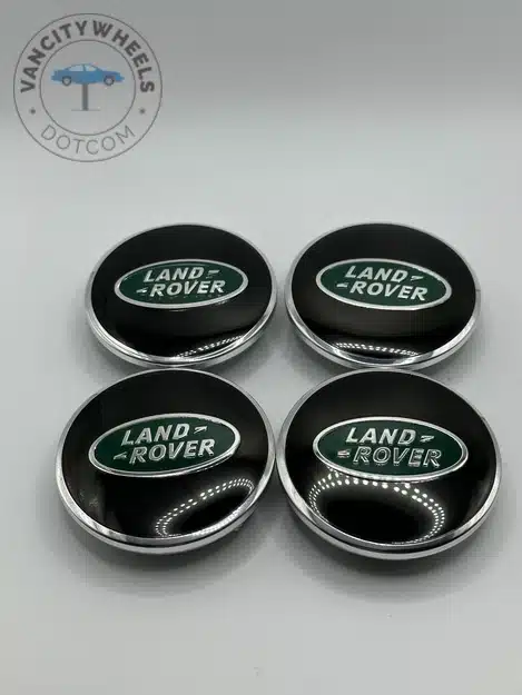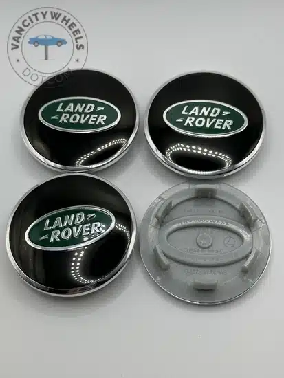 Quantity: Full set of 4 Land Rover 61mm Green and Silver Wheel Center Caps.
