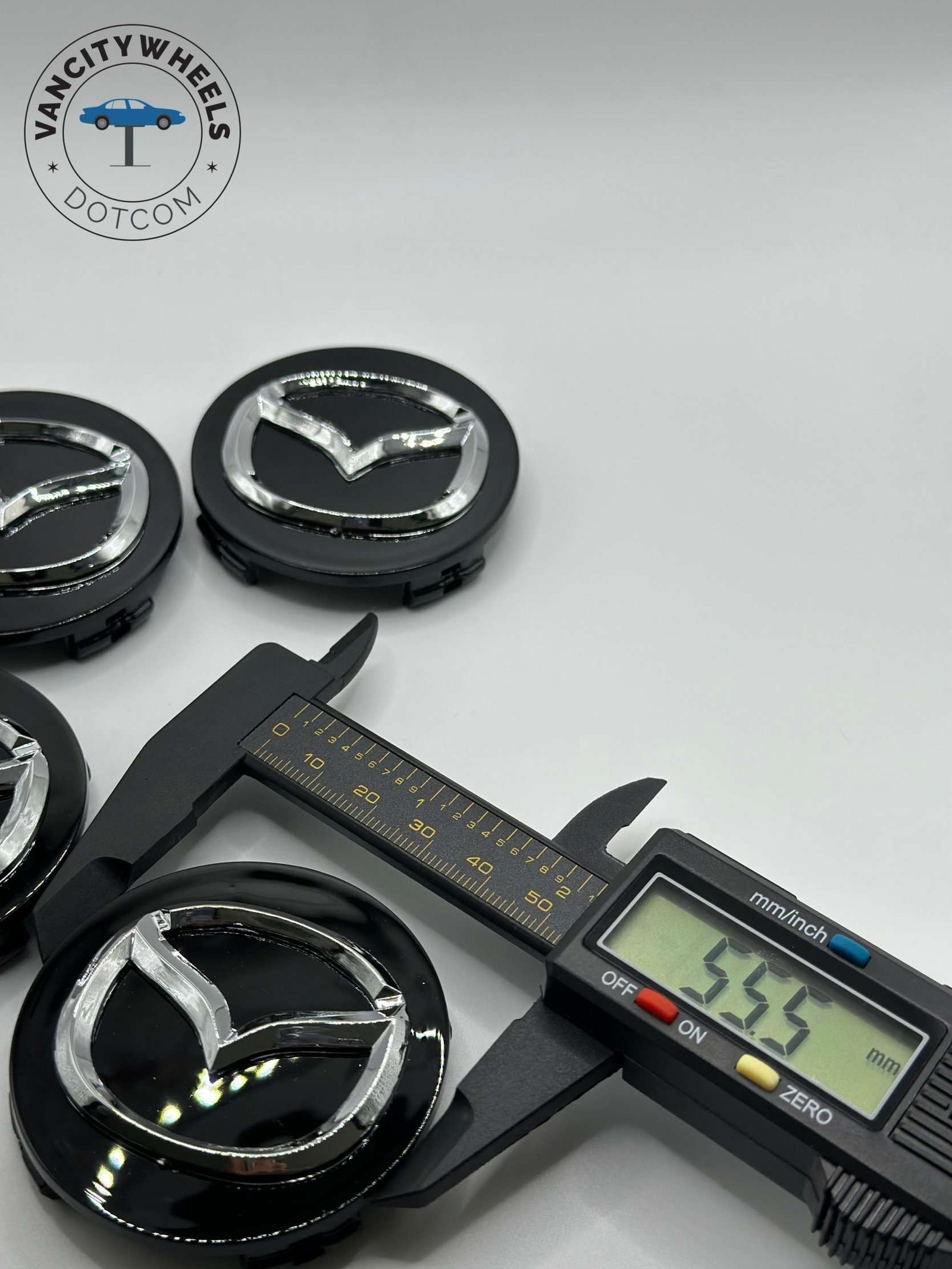 Ford Shelby 54mm Black & Silver Wheel Center Caps – 4pc Cobra Set