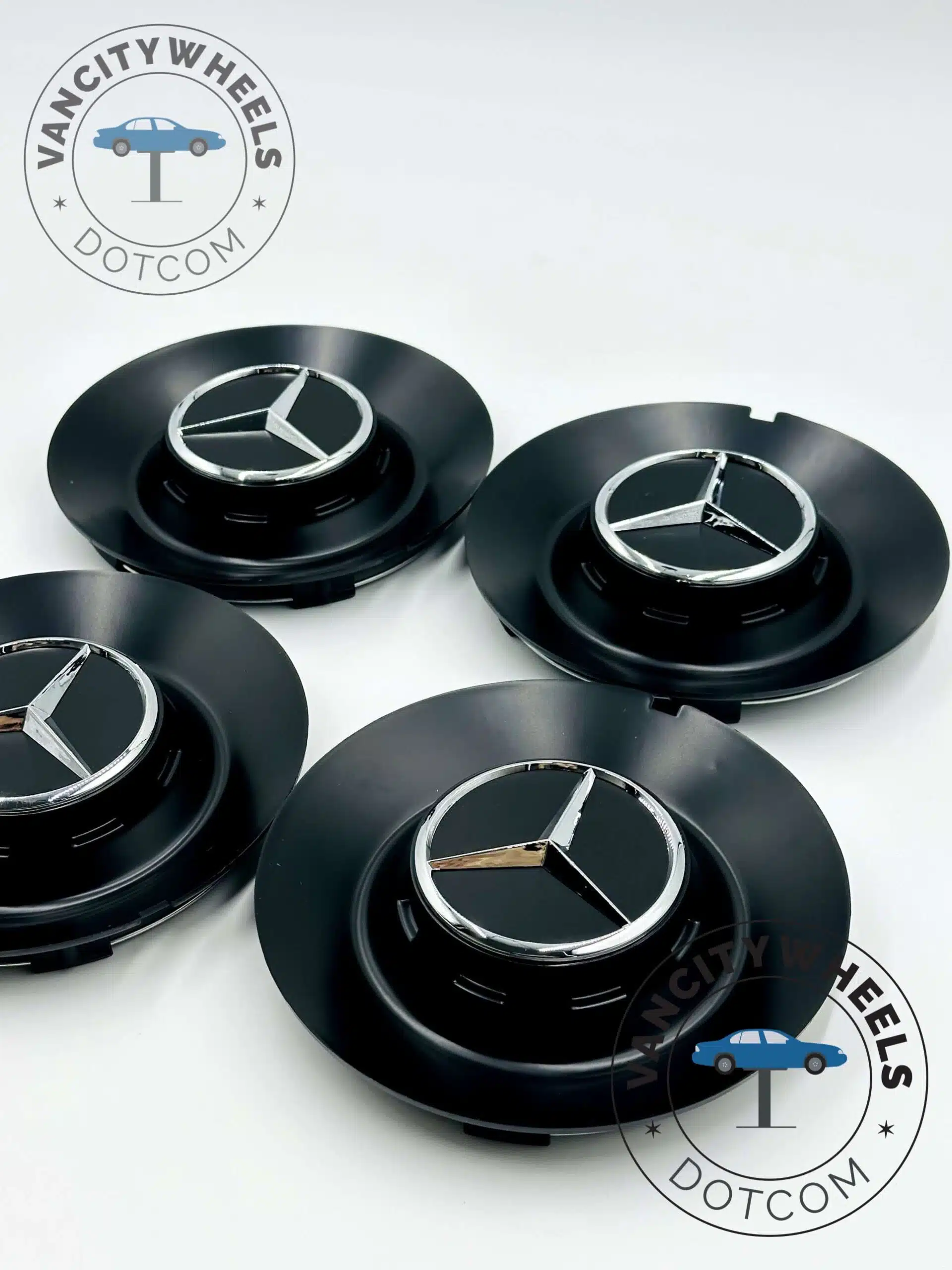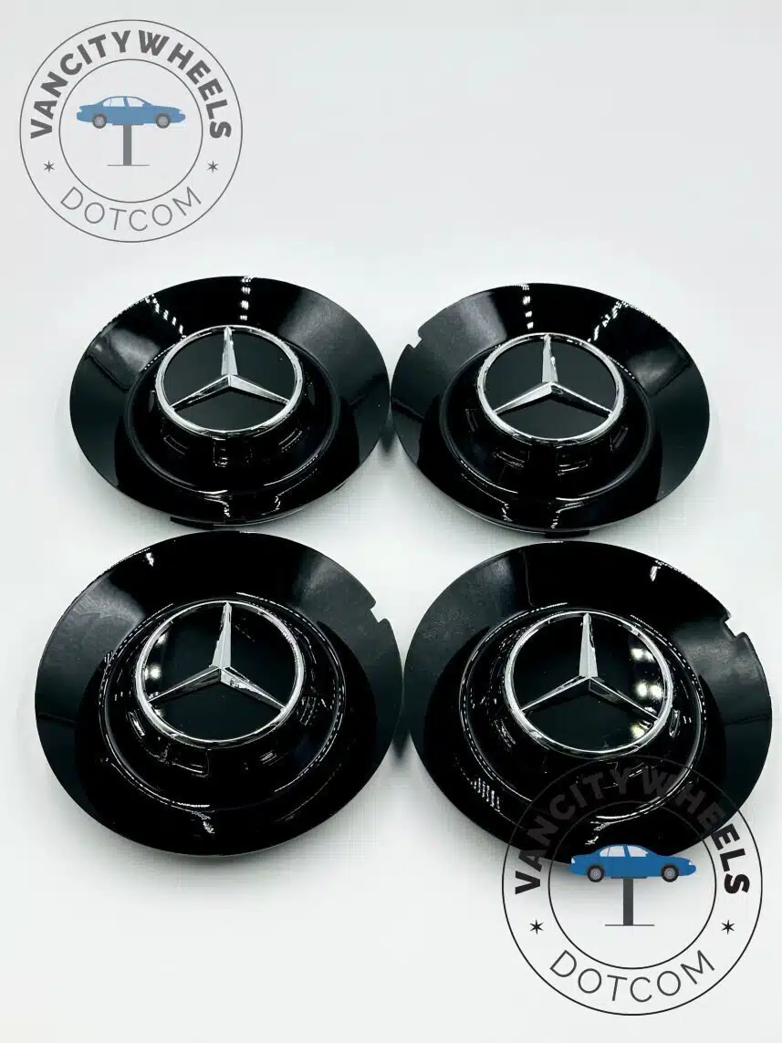 4pcs Mercedes AMG Spinning Wheel Center Caps—Black Excellence