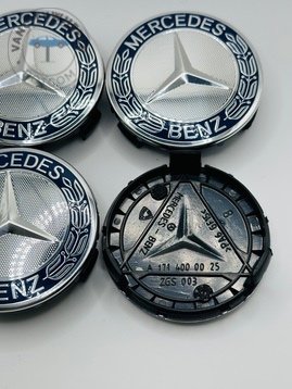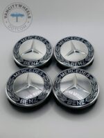 Mercedes-Benz 74mm Dark Blue & Chrome Wheel Center Caps – 4pc Set A1714000025