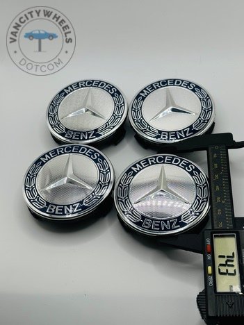 Quantity: Full set of 4 Mercedes-Benz 74mm Dark Blue and Chrome Wheel Center Caps.