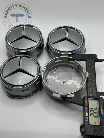 • Quantity: Full set of 4 Mercedes-Benz 75mm Gloss Grey Wheel Center Caps.