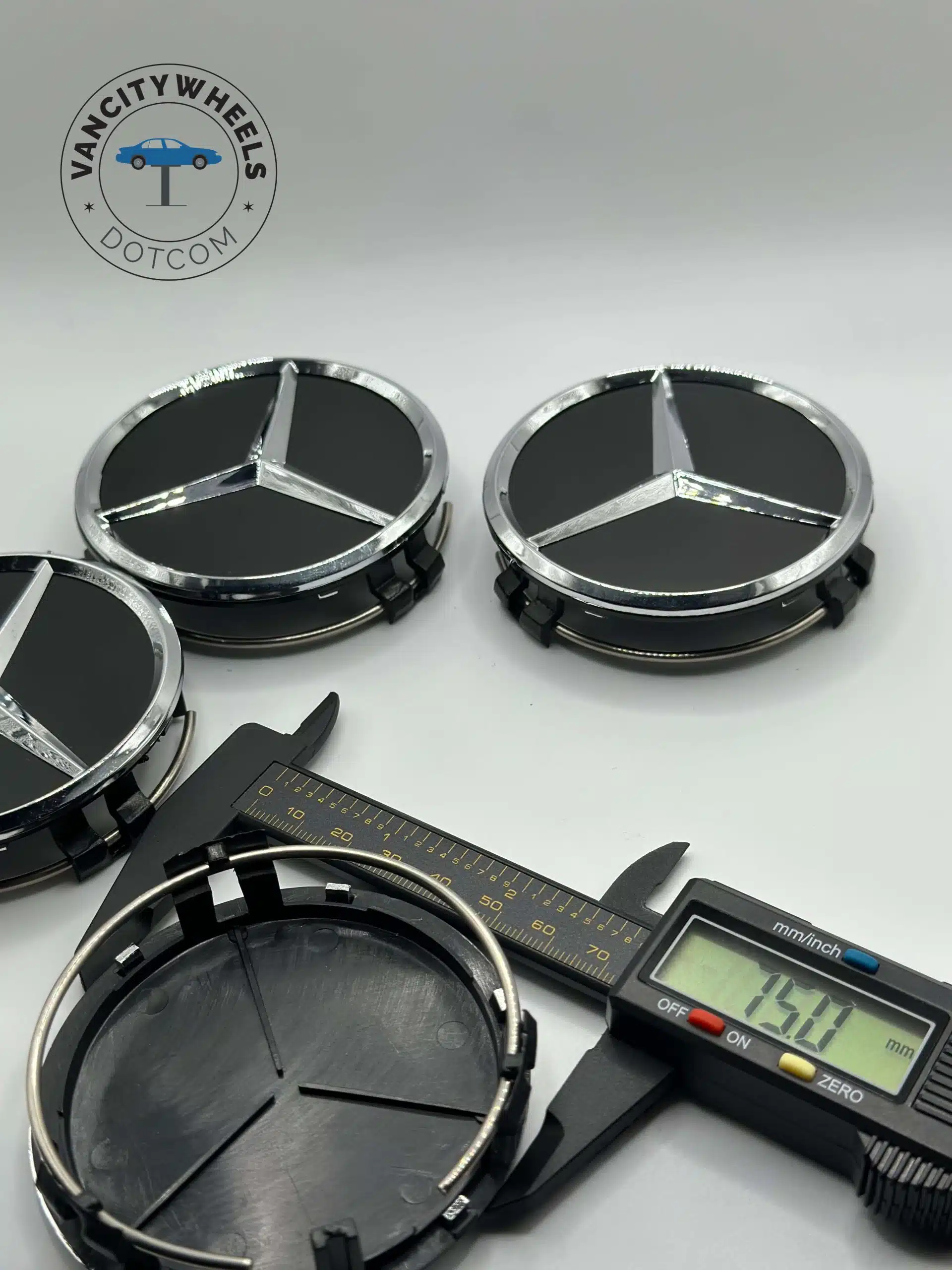 Compatibility Note: These caps fit nearly all Mercedes Benz models from the last two decades (C-Class, E-Class, S-Class, etc.) that utilize the standard 75mm wheel hub opening.