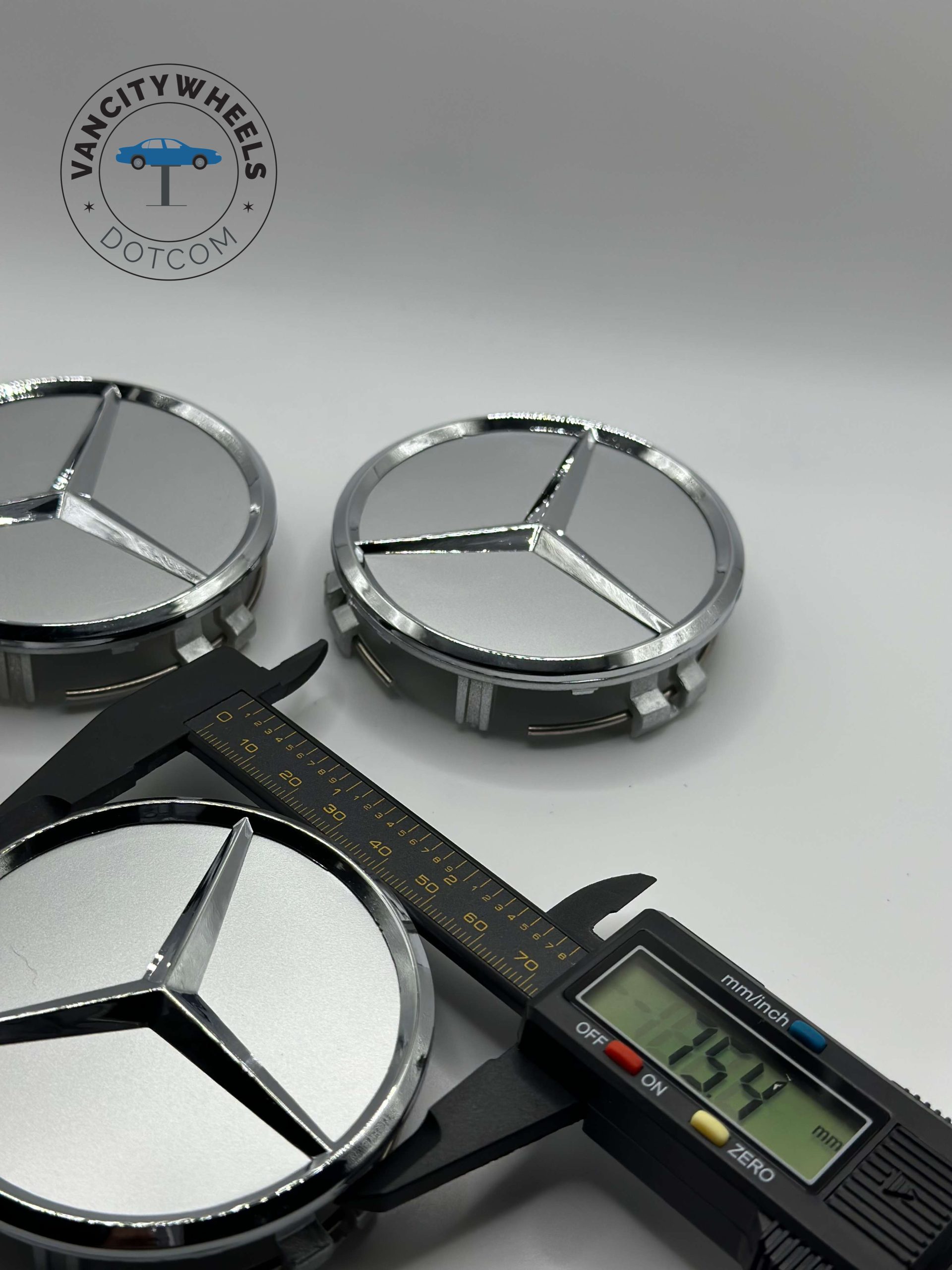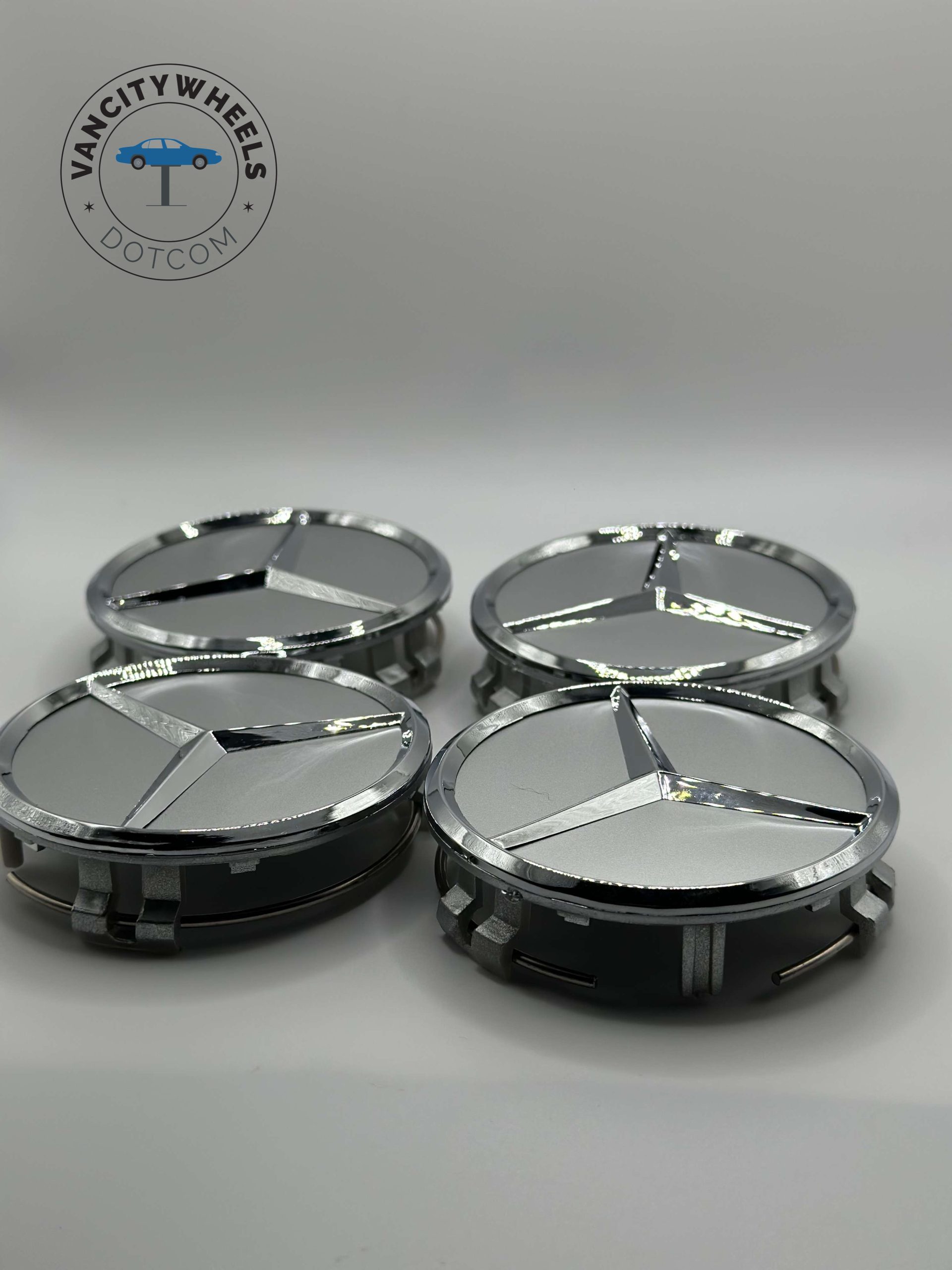 Mercedes Benz Silver Chrome Wheel Caps – 75mm 4pc Hubcap Set
