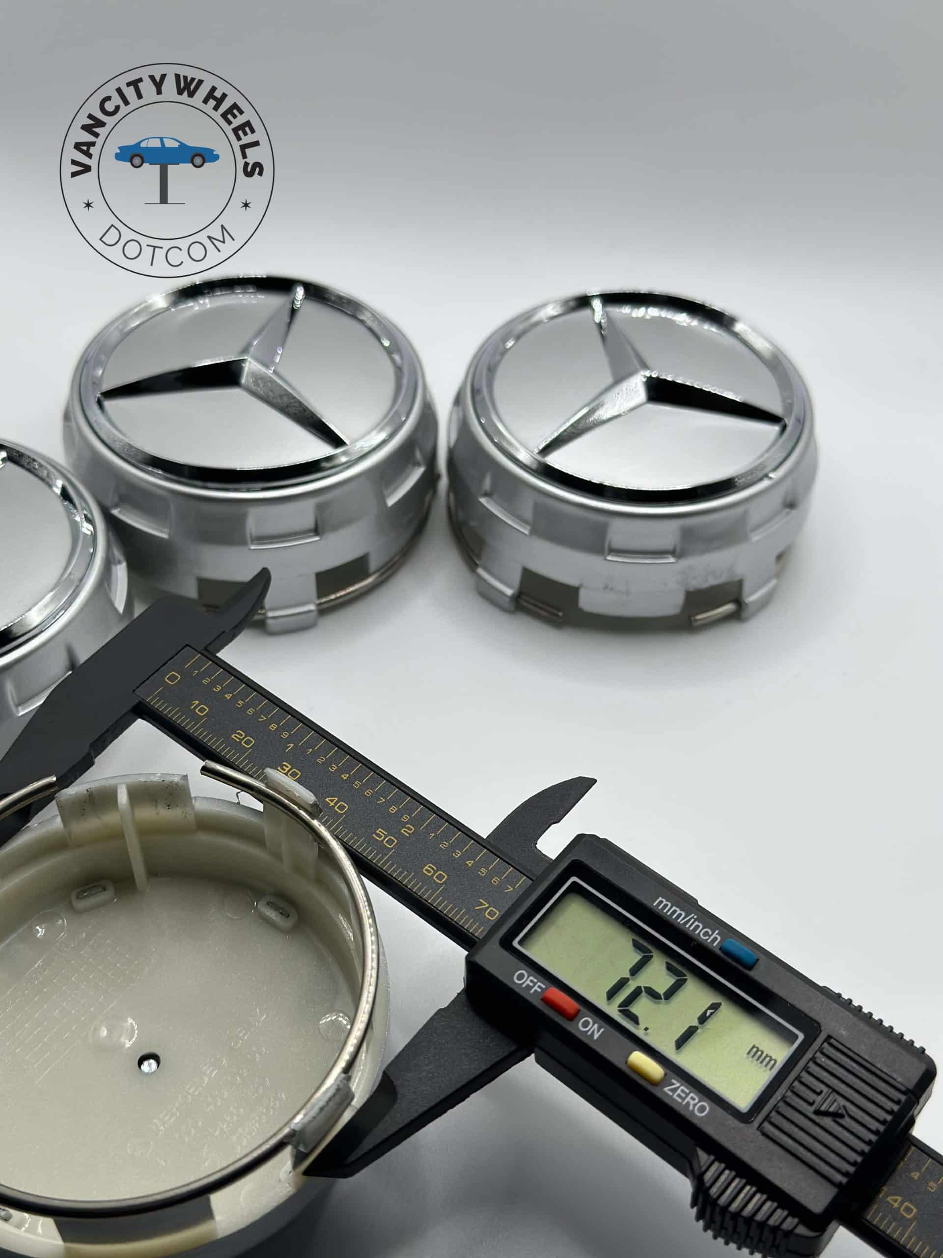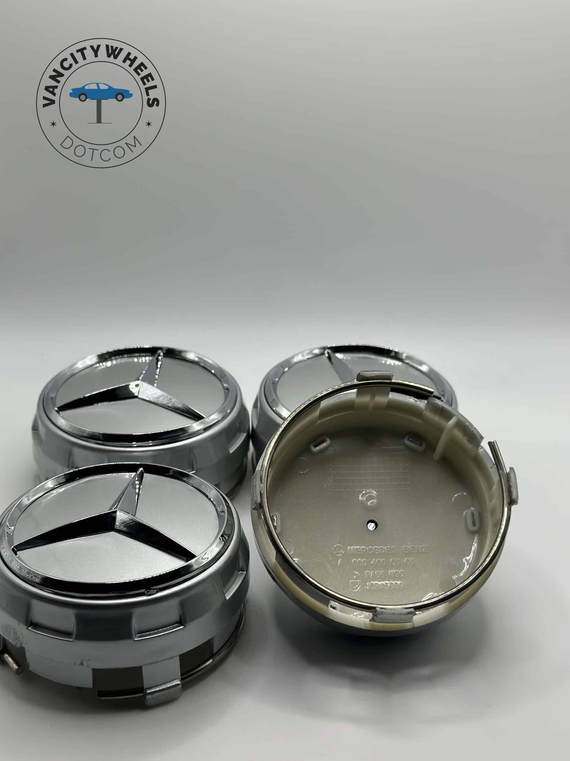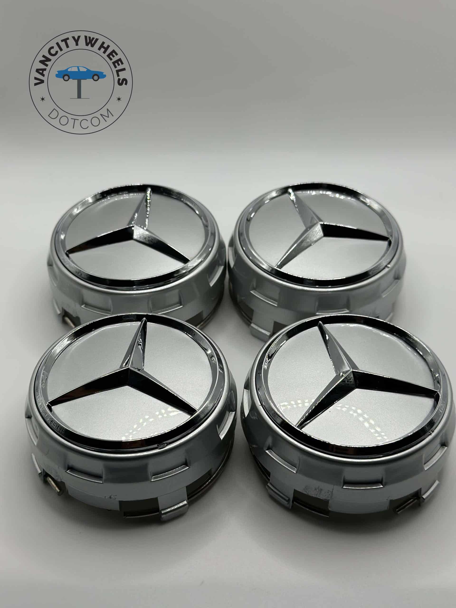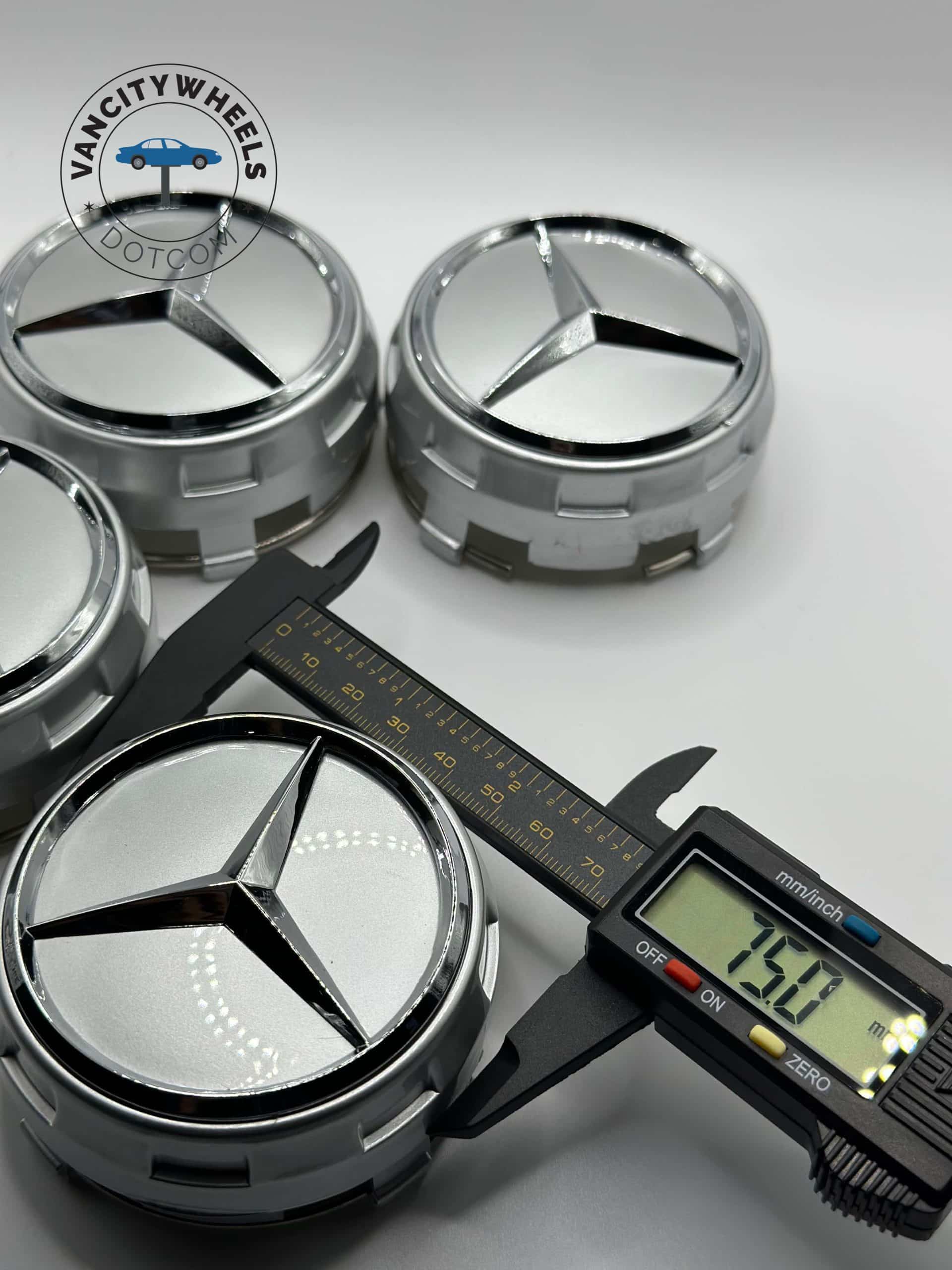Mercedes Benz Wheel Center Caps – Set of 4 Raised Silver 75mm