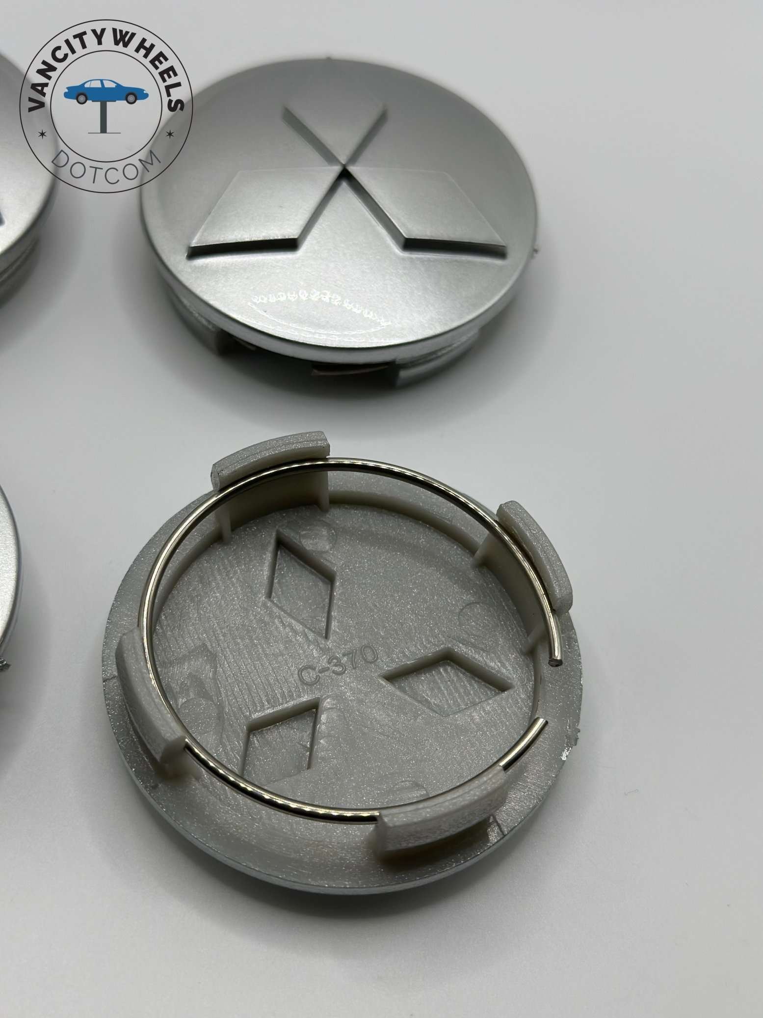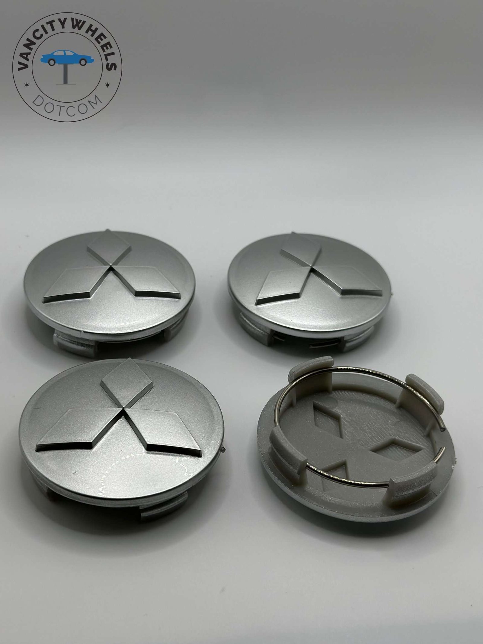 Quantity: Full set of 4 Mitsubishi 60mm Silver Wheel Center Caps.