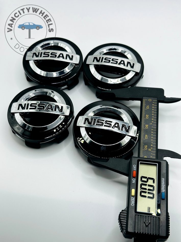 Quantity: Full set of 4 Nissan 60mm Black and Silver Wheel Center Caps.