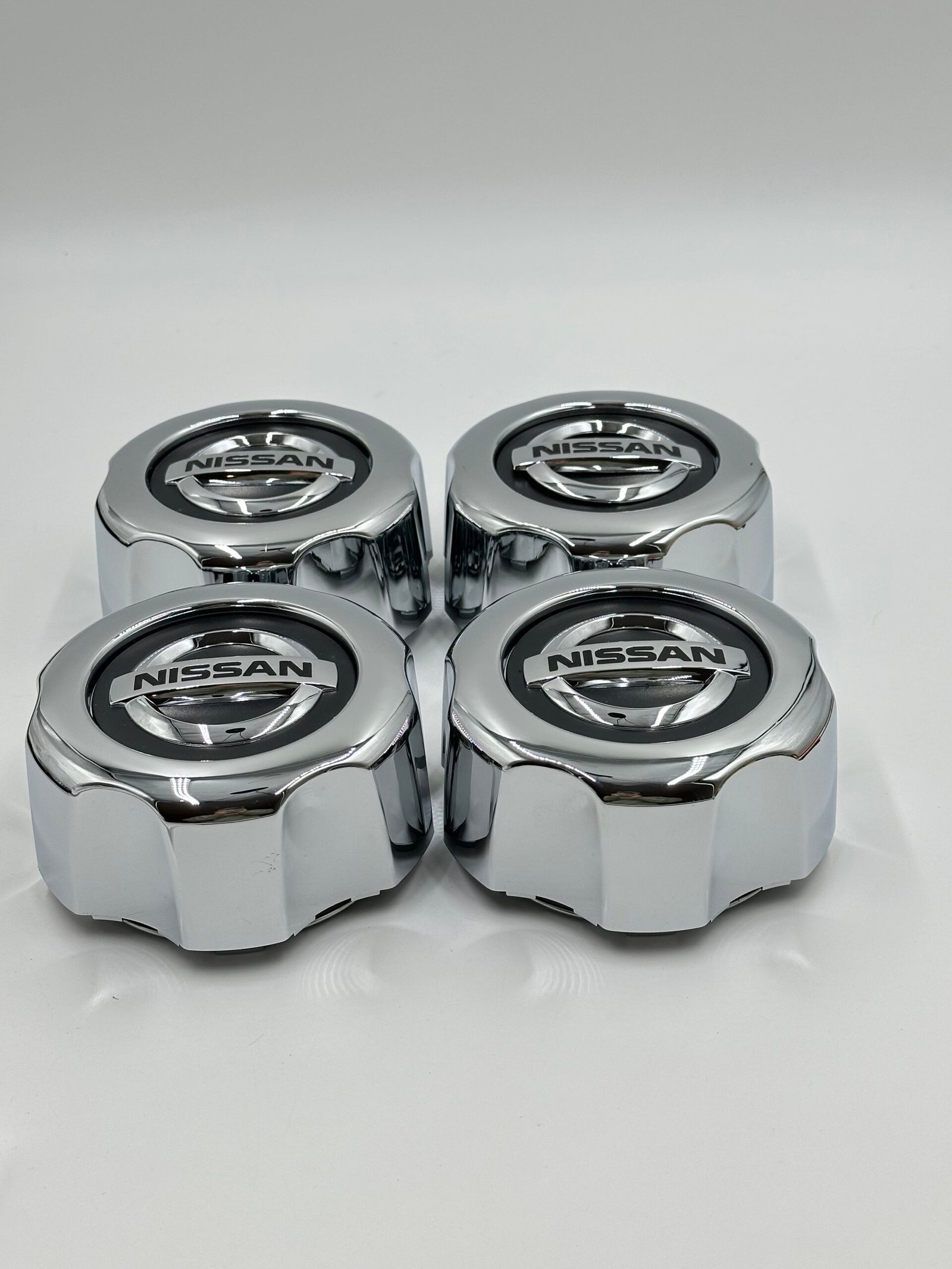 Quantity: Full set of 4 Nissan 130mm Chrome Wheel Center Caps.