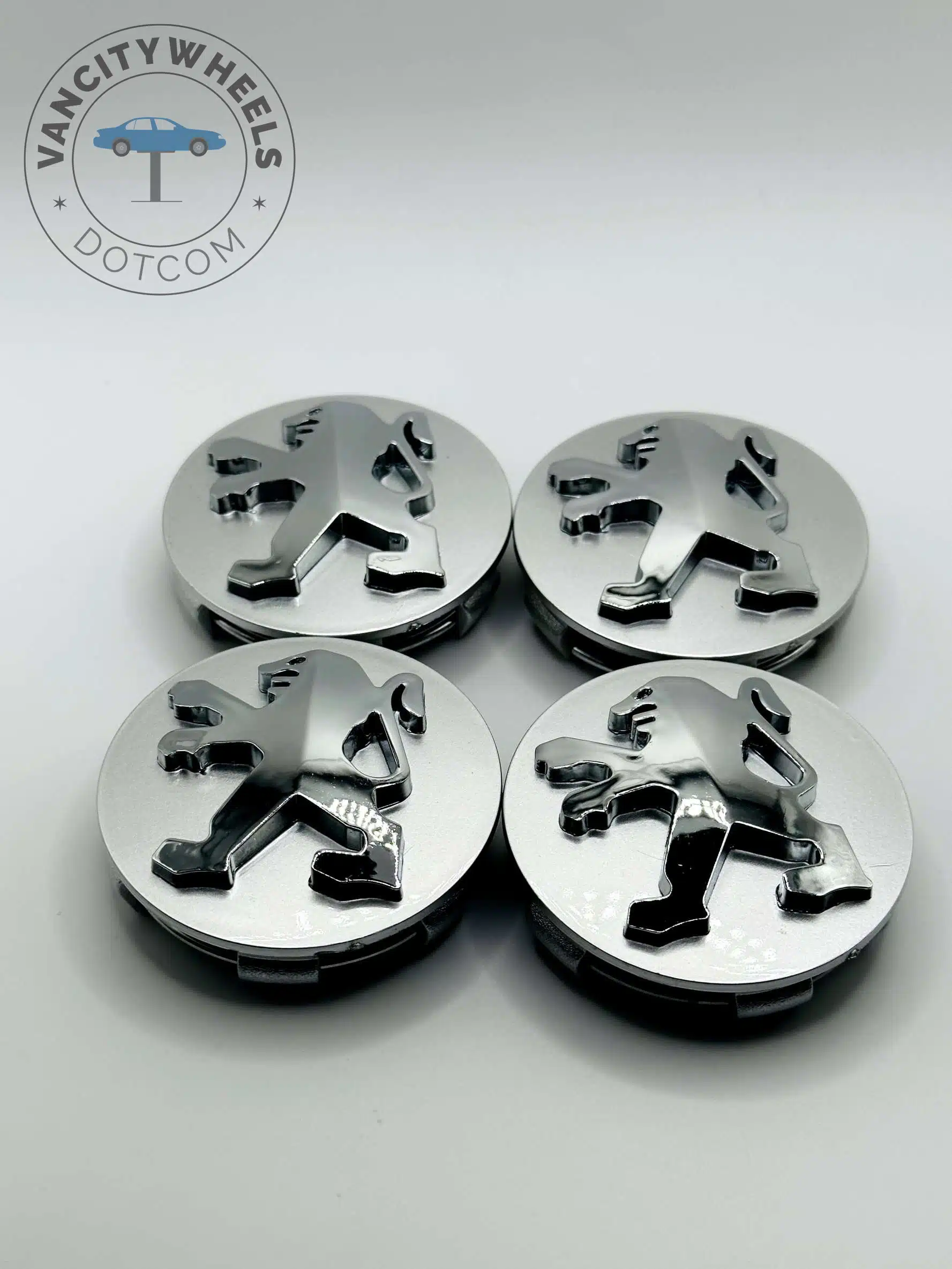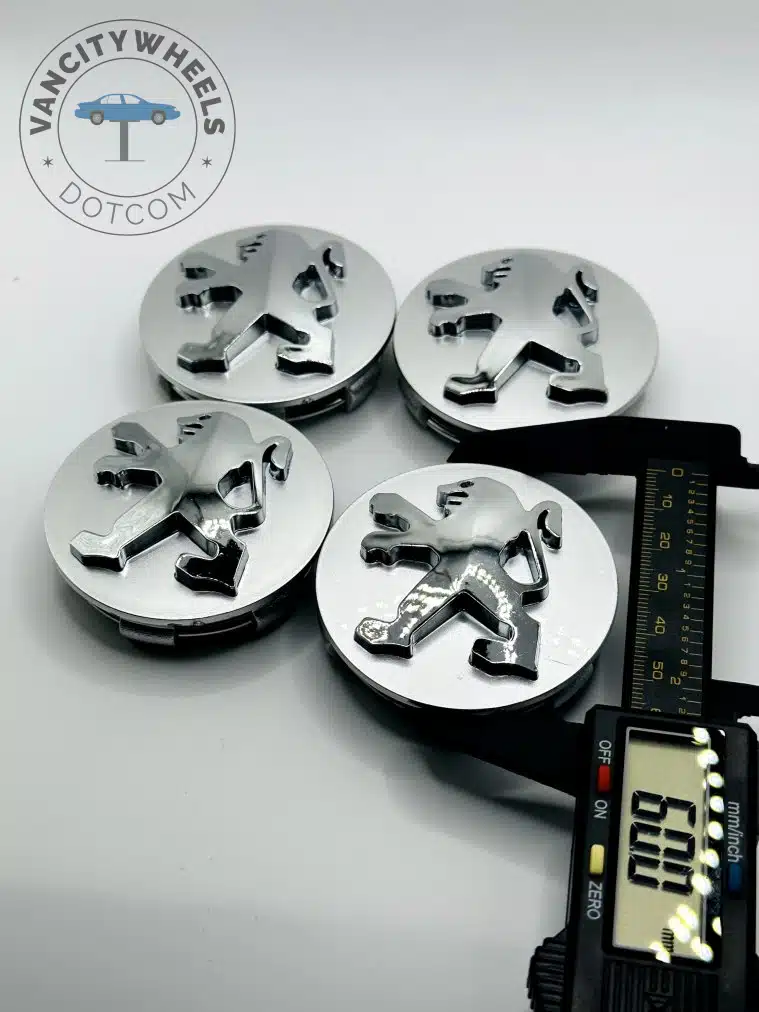 Peugeot Wheel Center Caps – Set of 4 Silver/Chrome 60mm
