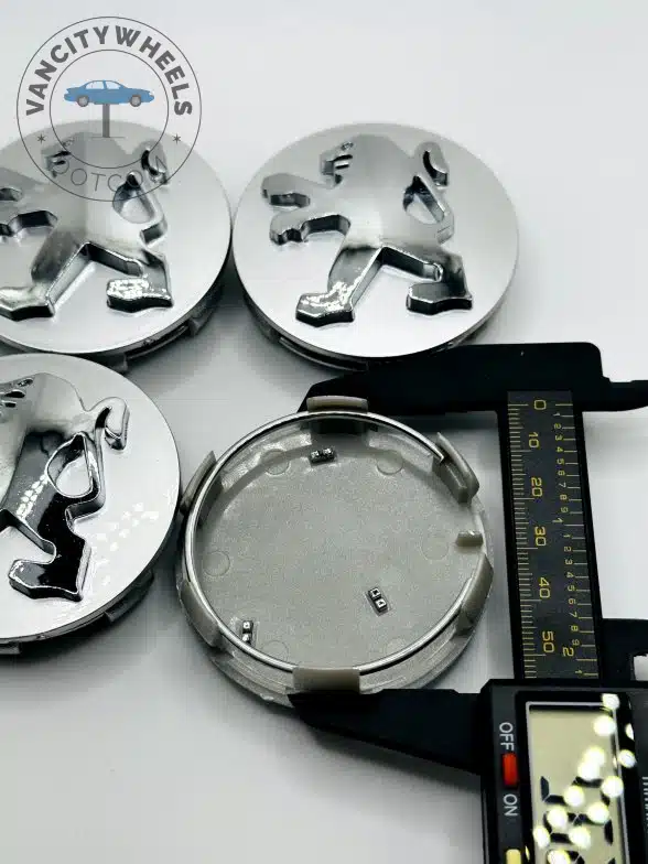 Premium Chrome Finish: High-gloss silver and chrome design that perfectly complements Peugeotโs factory wheel finishes.