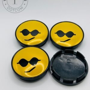 Smiley Face Emoji 60mm Wheel Center Caps – 4pc Happy Face Hubcaps