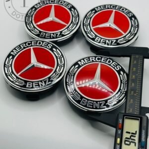 Mercedes Red Alloy Rim Center Caps 75mm – 4-Piece OEM-Style Set