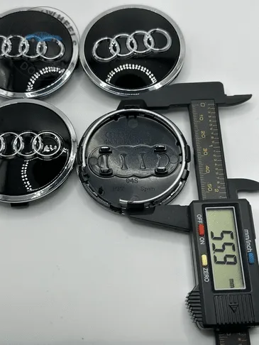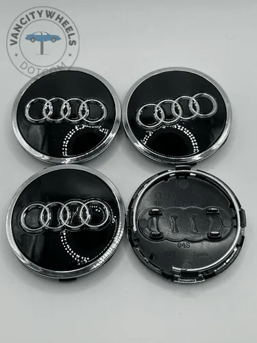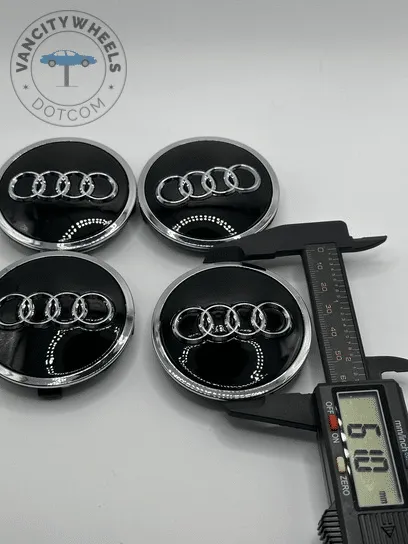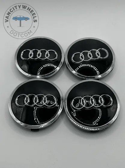 Quantity: Full set of 4 Audi 61mm Black and Chrome Wheel Center Caps.